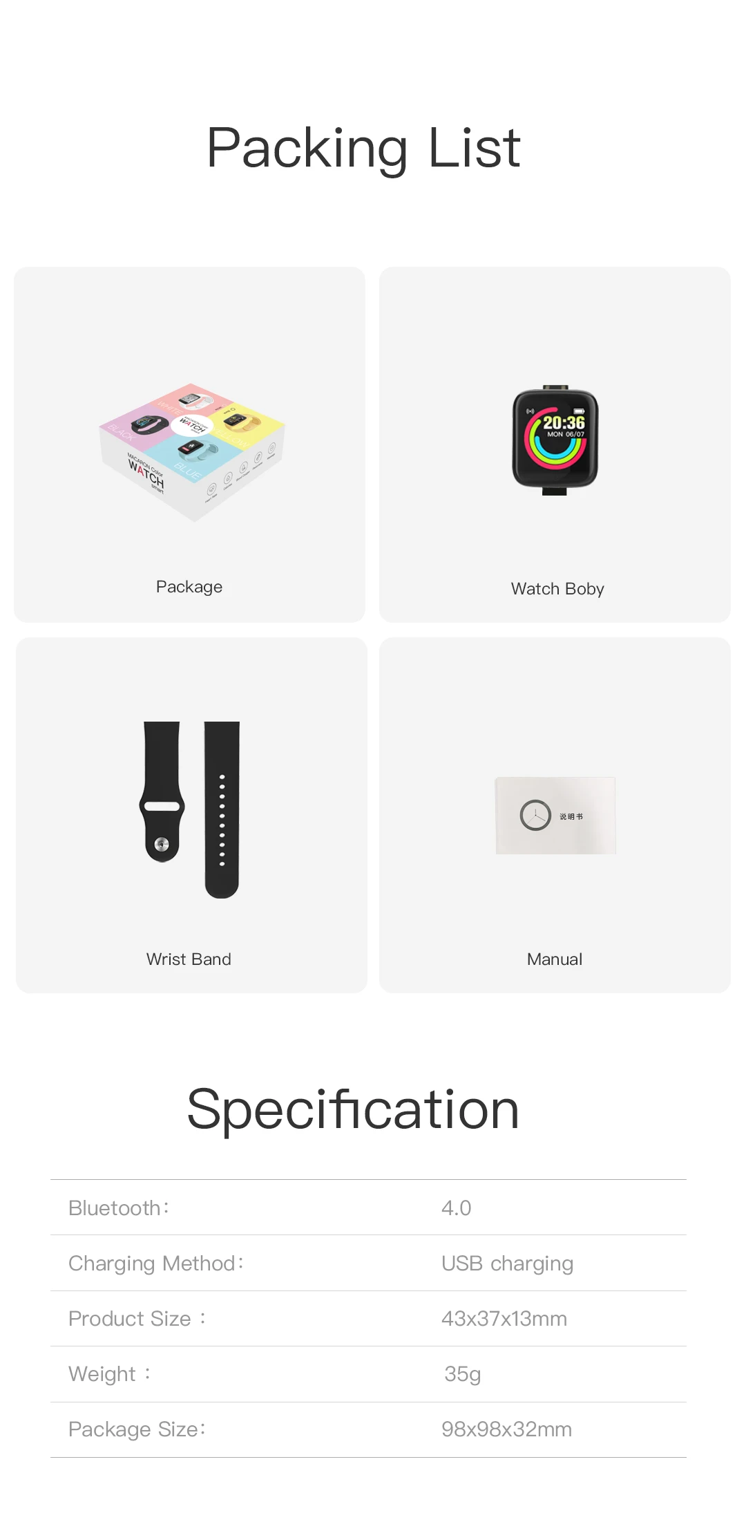 Smart watch 2Bluetooth:BLE 4.0