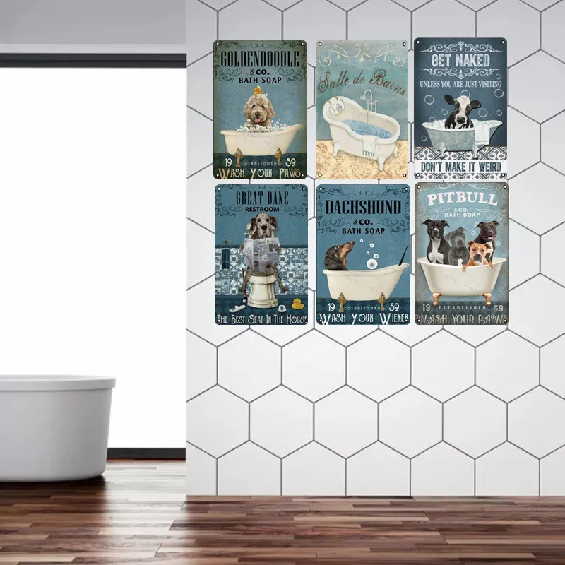 Забавные кошки на море душ такса собака личность металлический знак табличка водонепроницаемый Туалет Оловянная картина настенное Искусство Декор