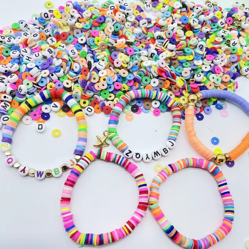 6 мм, плоские круглые полимерные бусины из глины, комплект подвесок, эластичная нить, застежка-лобстер, стандартный браслет, набор сережек