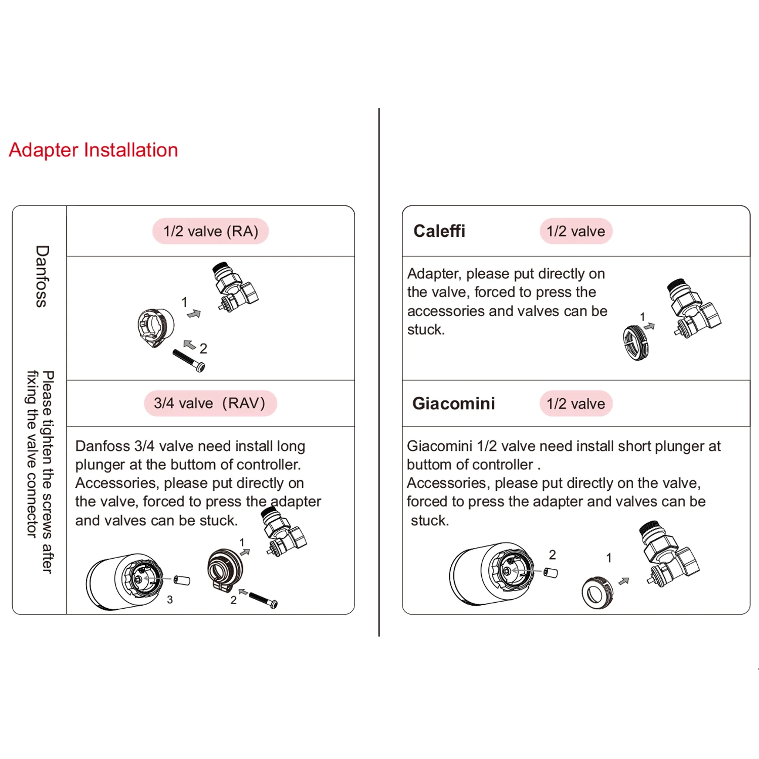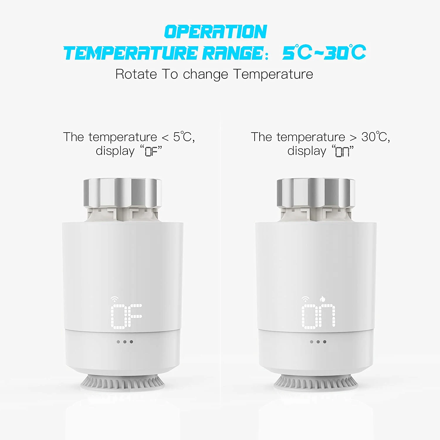 Это стильный и точный программируемый контроллер TRV, искусственно устанавливаемый комнатной температурой, в основном используется в напольной системе отопления для контроля закрытия и открытия трубы. Был разработан для самостоятельного управления радиаторами отопления, а также может осуществлять удаленный мониторинг с помощью телефона. Он устанавливается на новые или существующие Термостатические клапаны радиатора (короткое имя --- TRV) и в соответствии с серией запрограммированных соединений для контроля температуры в помещении. Особенности: Энергосбережение --- этот привод прекрасно поворачивается для состояния клапана, открываемого, в соответствии с комнатной температурой и установочной температурой, чтобы соответствовать лучшему статусу энергосбережения для отключения срока службы батареи. Многофункциональность --- работа с интеллектуальным шлюзом обеспечивает контроль голосового пульта. С противообрастающей функцией, Защитите ваш клапан не застревает. Функция блокировки ребенка и функция защиты от повреждений, более безопасная и долговечная Компактный дизайн --- небольшой цилиндрический корпус с ЖК-дисплеем и 5 кнопками облегчает чтение и установку значения в темноте. Крепление на радиатор нелегко разбиться. Легко установить --- метод установки гайки, легко и быстро установить, удобно разбирать. Применяется для --- электрического нагревательного привода ветрового клапана, небольшого клапана и динамического балансирующего клапана. Подходит для дома, торгового центра, отопления отеля и центрального контроля температуры кондиционера, контроля комнатной температуры. Ссылка на приложение: 1. Загрузка: Нажмите app store или рынок приложений Android, чтобы загрузить приложение «Tuya Smart». 2. Регистрация и вход в систему: нажмите «Зарегистрировать», чтобы создать учетную запись. Введите пароль вашей учетной записи для входа в систему. 3. Добавьте шлюз «сброс» для 4s, пока зеленый светильник не загорится. (Примечание: только 2,4 ГГц сети Wi-Fi поддерживаются. Пожалуйста, выберите какой-либо 2,4 ГГц сети.) 4. Добавить контроллер (шлюз должен быть добавлен перед добавлением контроллера.) 5. После успешного добавления контроллера вы можете управлять устройством через приложение, например: настройка температуры, включение/выключение питания, настройка программирования, настройка многодневного программирования, временный режим ожидания. Характеристики: Модель: 801-WiFi Цвет: белый Источник питания: 2 батареи AA (не входят в комплект) Система поддержки: Android и iOS Ссылка на приложение: Tuya smart Диапазон настройки температуры: 5 ~ 30 ℃ Температура погрешность настроек: 0,5 ℃ Диапазон отображения температуры: 0 ~ 50 ℃ Рабочая температура: 0 ~ 50 ℃ Диапазон беспроводной передачи: открытое расстояние 70 м; Внутренний диапазон 30 м Размер посылка: 12*6*6 см/4,7*2,4 * 2.4in Вес посылка: 188 г/6,6 унций Примечание: Этот термостатический клапан радиатора должен работать с умным шлюзом SASWG-04-WIFI(TY) (не входит в комплект), пожалуйста, покупайте отдельно! Упаковочный лист: 1 * термостат 1 * набор фитингов для установки 1 * Руководство пользователя (на английском языке)