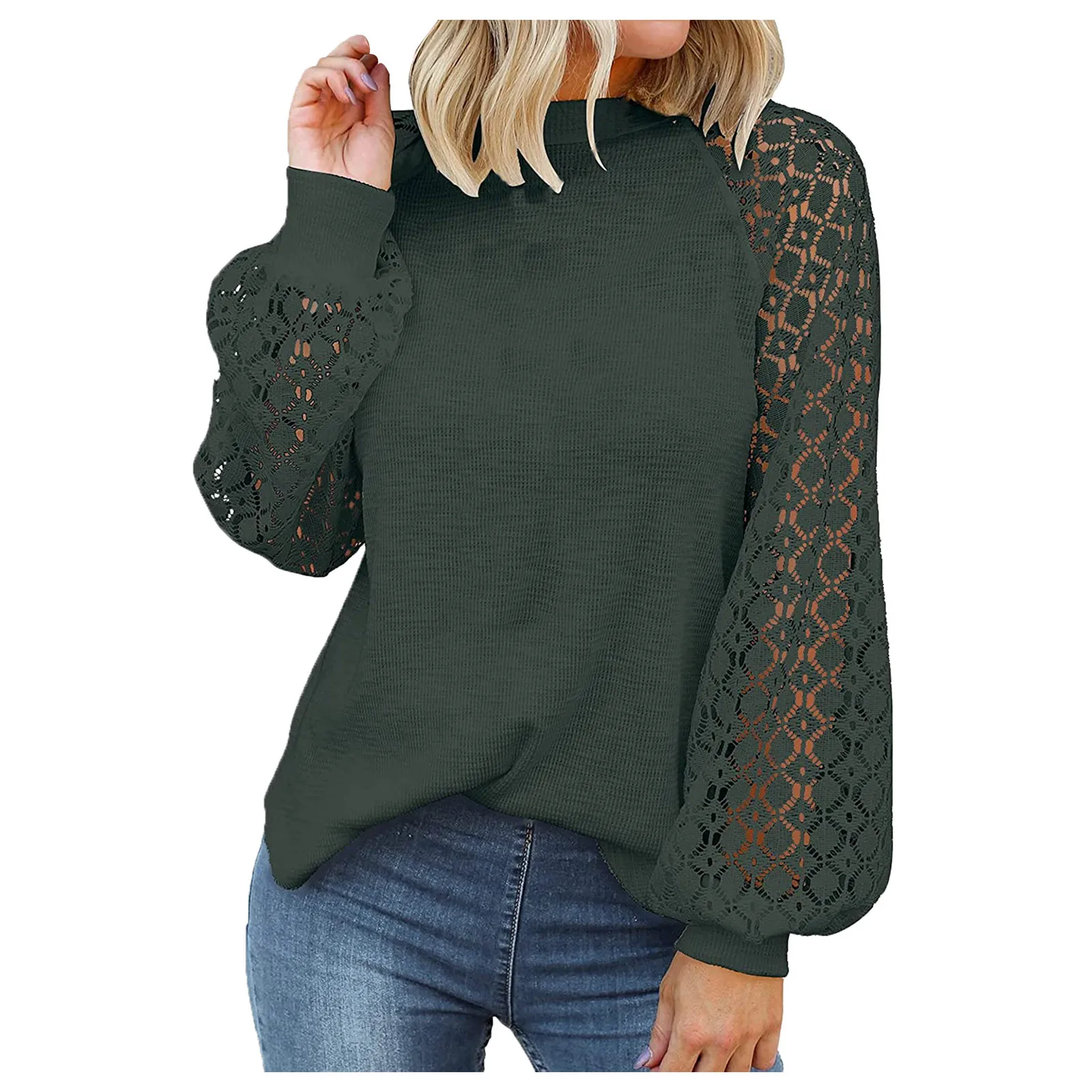 Осенне-зимние женские топы с круглым вырезом и длинными рукавами, кружевные свободные топы, свитера, блузки