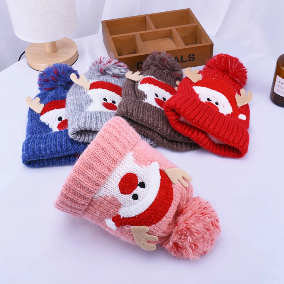 Зимние плотные теплые детские перчатки, варежки с 3D мультяшным котом, Рождественская шапка, вязаный шарф, перчатки, Плюшевые Пушистые детские варежки с пальцами