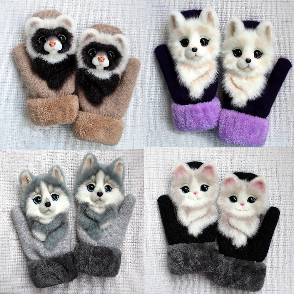 Митенки с животными ручной вязки, женские зимние перчатки, уличные ...