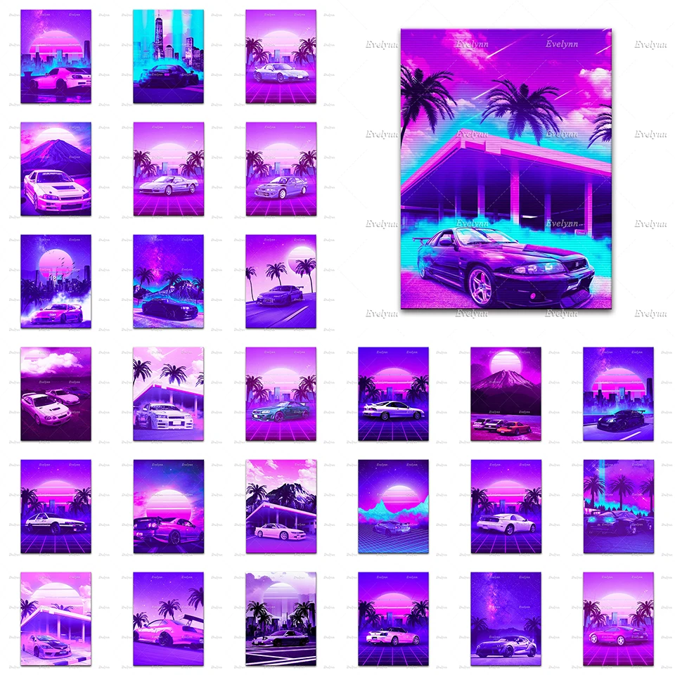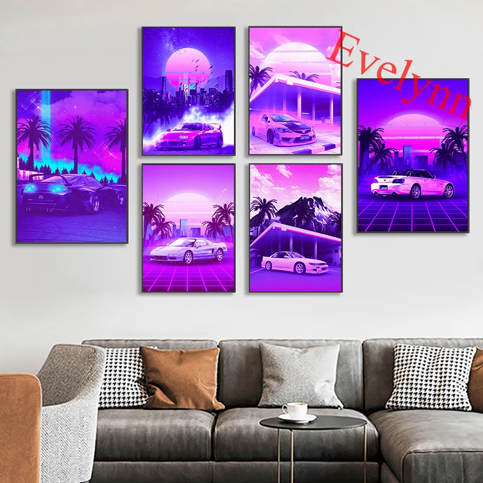 Постер Synthwave для Nissan Skyline Car, картина с изображением заката, спортивного автомобиля, декор для гостиной, скандинавский настенный художественный принт, домашний декор