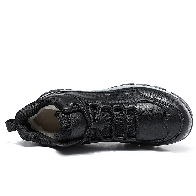 Мужские кожаные ботинки на шнуровке, Черные Теплые ботильоны с плюшевой подкладкой, высокие кроссовки, спортивная обувь, размер 48, для зимы, 2019