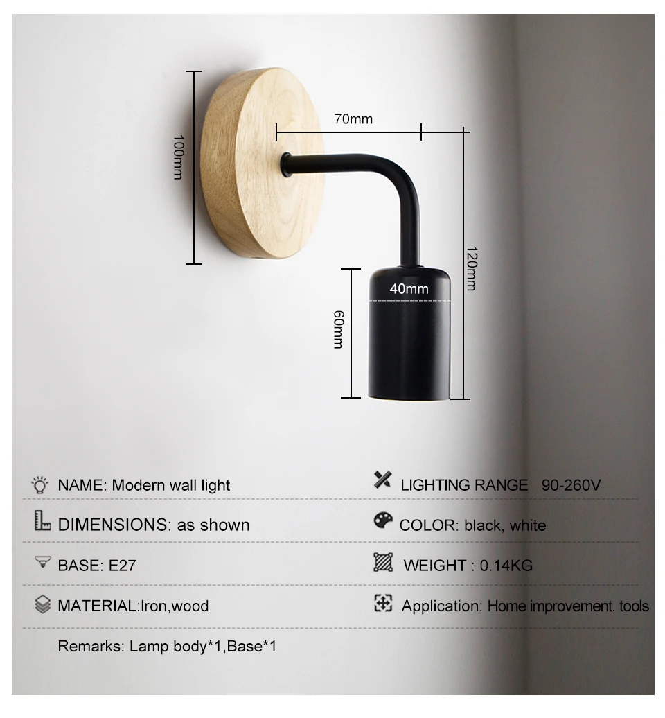 Винтажный деревянный настенный светильник E27, 220 В, 110 В