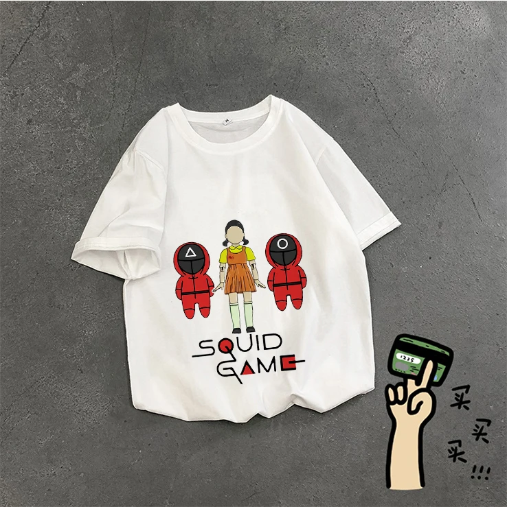 Женские футболки с принтом игра кальмар, летняя футболка с мультяшн...
