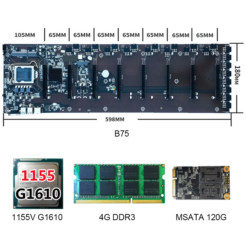 Материнская плата для майнера BTC, многографический слот, большой расстояние, линейная B75, комплект материнской платы с 8 картами ETH