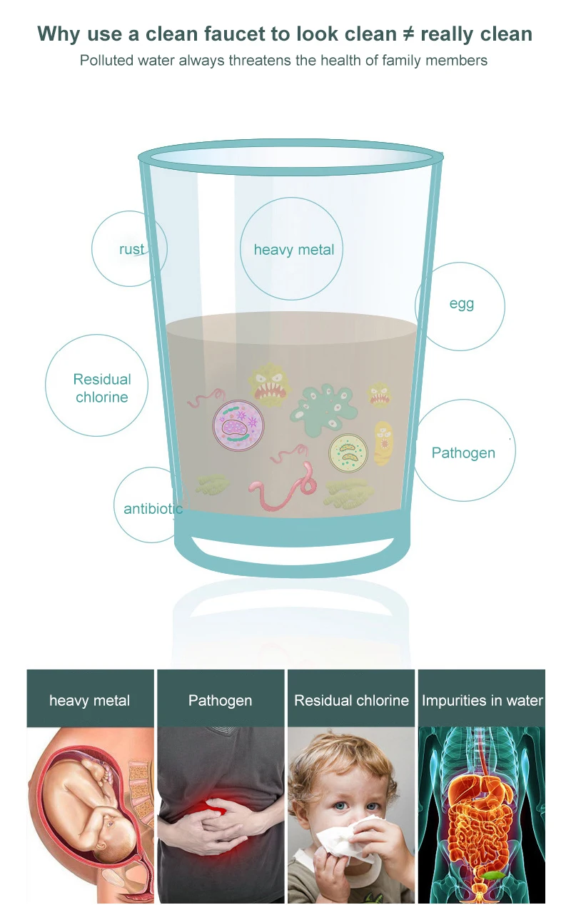 Cooperate with the layer by layer purification and filtration system to help you remove iron slag, rust, sediment, colloid, suspended solids and other impurities in your tap water; Remove residual itching, peculiar smell, and various toxic and harmful substances in water. Make every drop of water you drink fresh and clean.