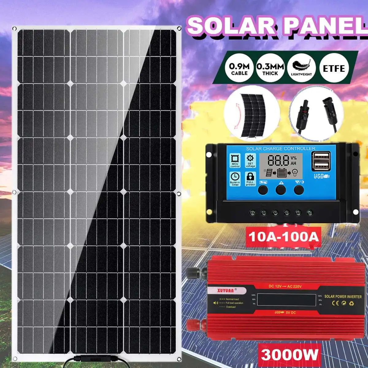 Система солнечной энергии 3000 Вт, 220 В3000 Вт, инверторный комплект, солнечная панель, зарядное устройство, полный контроллер, домашняя сетка, лагерный телефон