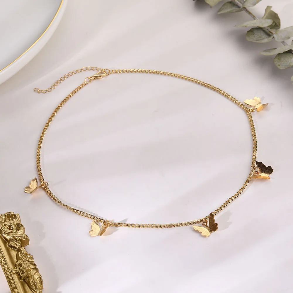 Чокер Женский позолоченный с бабочками, модное ожерелье-чокер с пок...