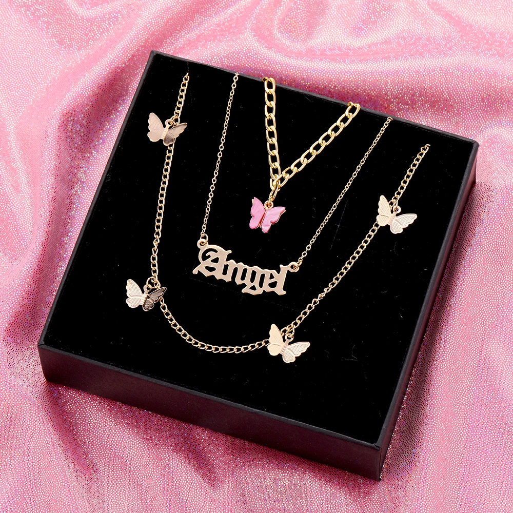 Женское многослойное ожерелье с подвеской-бабочкой, винтажное ожере...