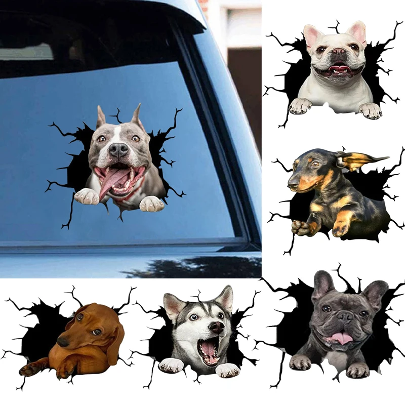 Наклейки на автомобиль, водостойкая Милая трещина, мультяшная собак...