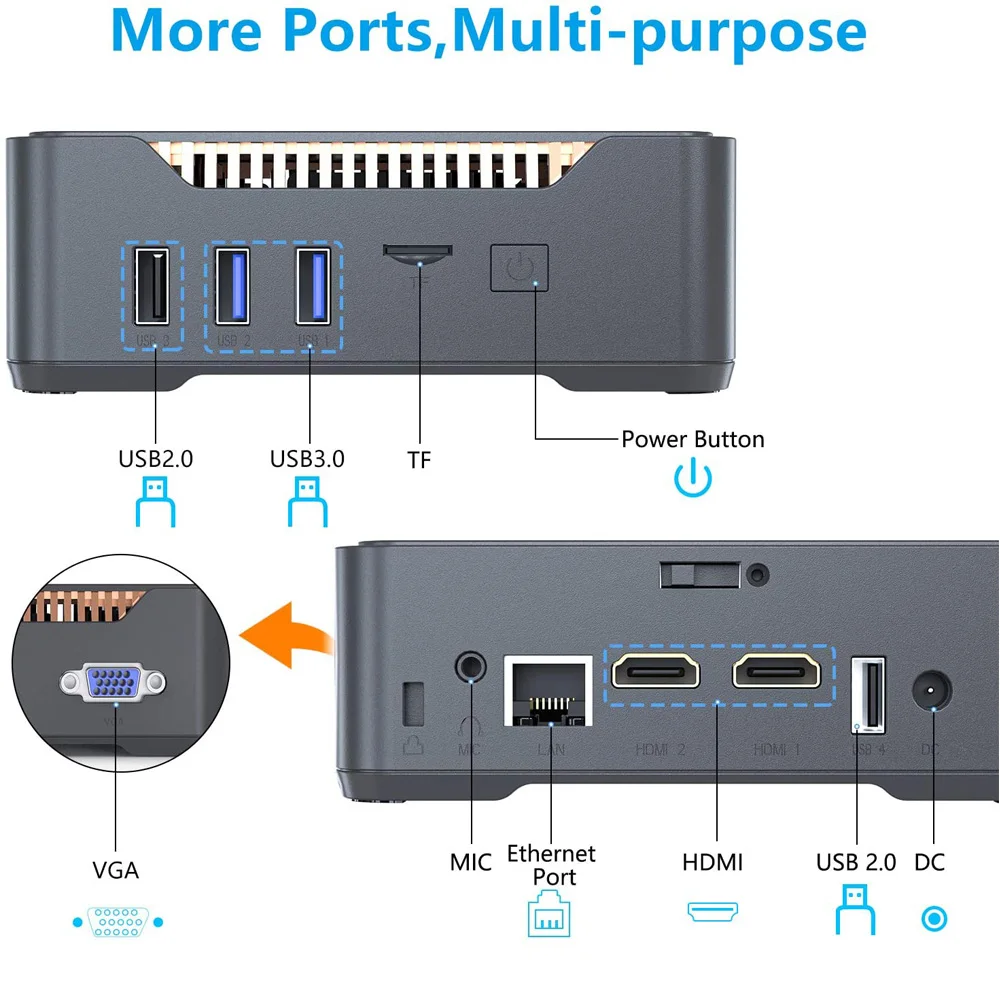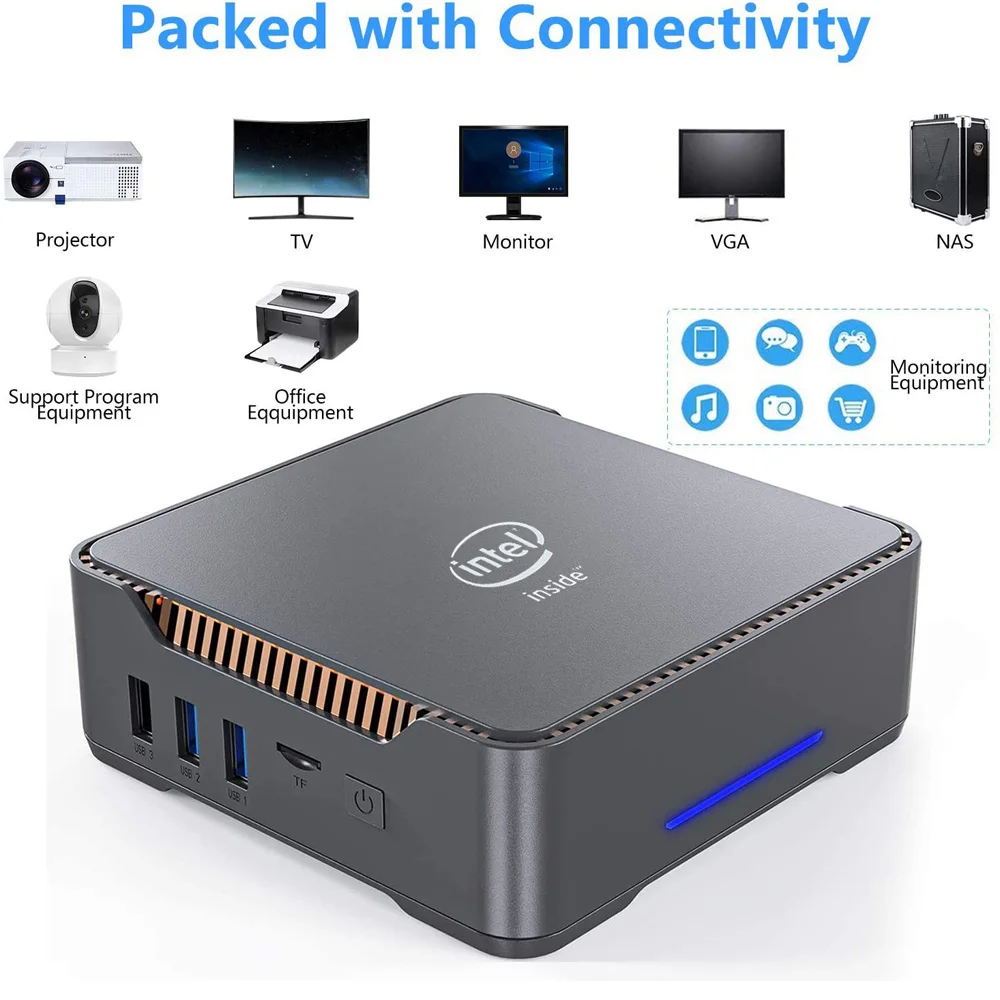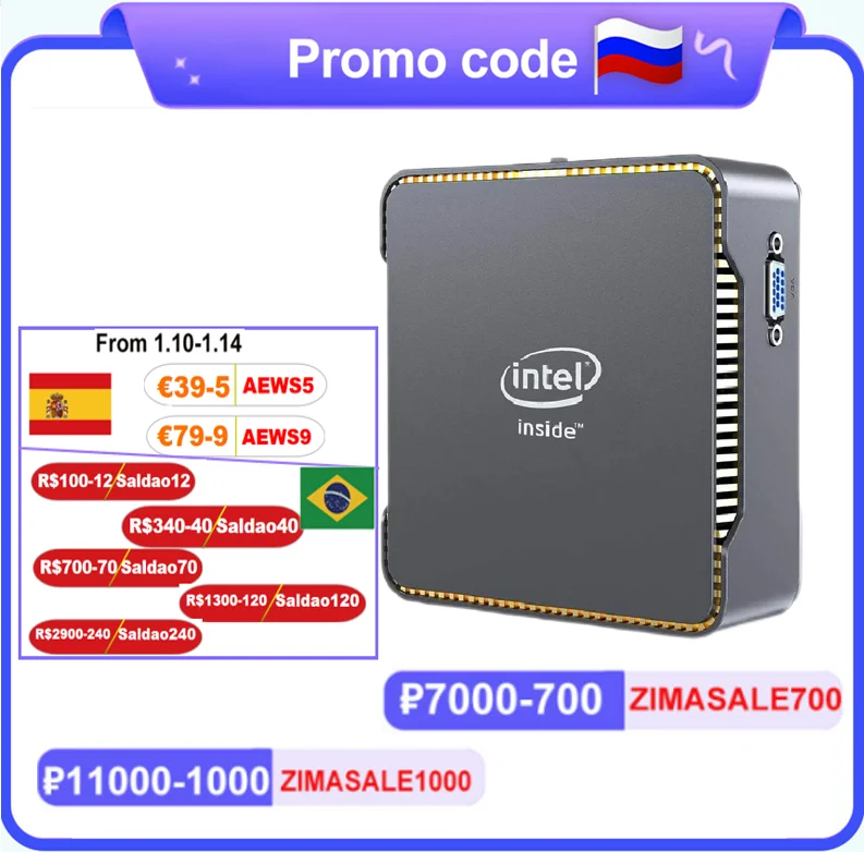 Мини-ПК AK3V, Windows 10, Intel Core Apollo Lake Celeron, 4 + 646128 ГБ, 2,4 + 1000 ГГц
