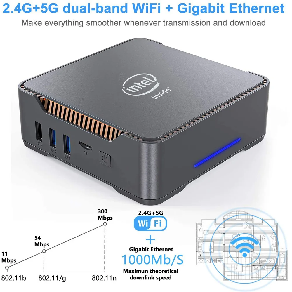 4. Двухдиапазонный WIFI Поддержка 2,4G/5,0 GHz, 1000M LAN Eithernet