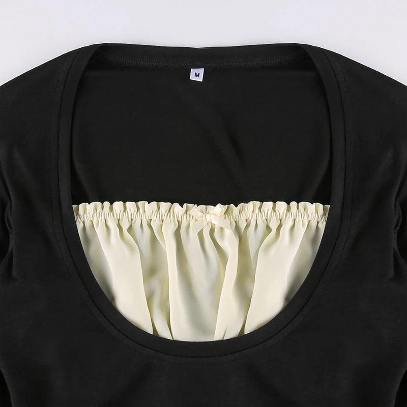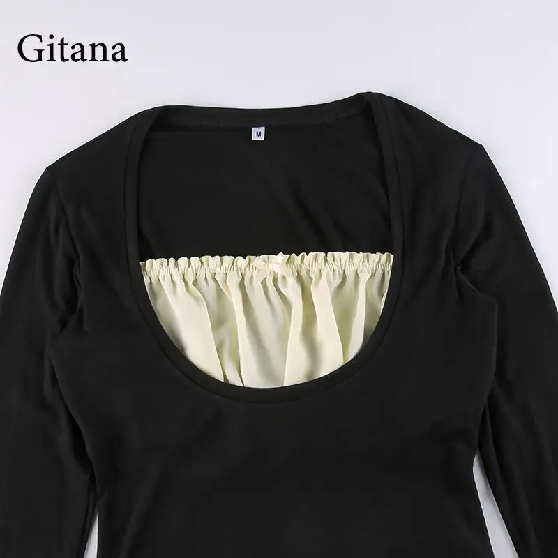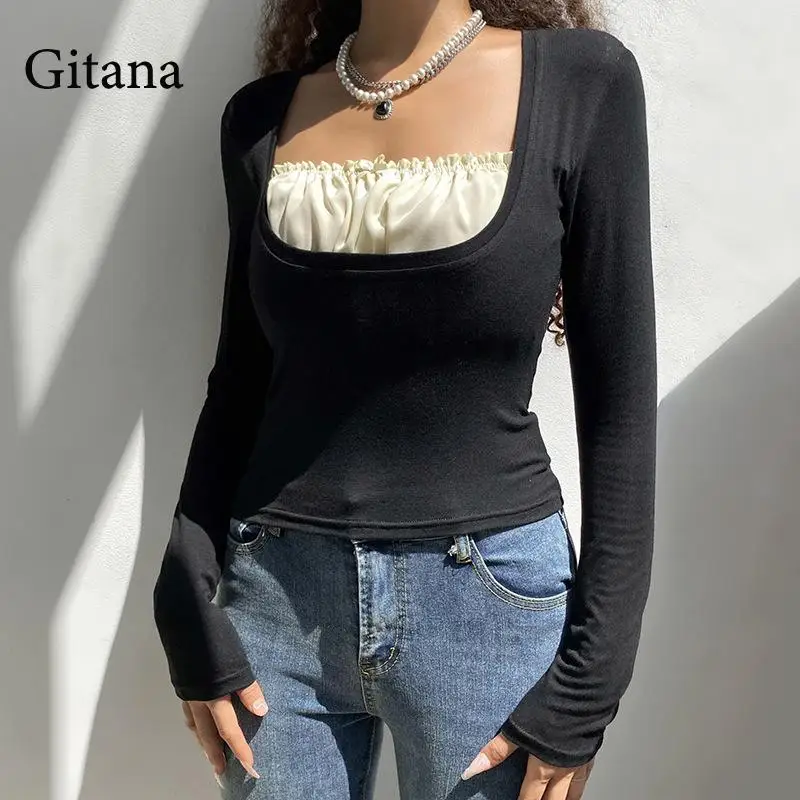 Тонкая футболка Gitana Y2K в стиле пэчворк с длинными рукавами, повседневные женские футболки в стиле ретро с квадратным воротником, осенняя сказочная одежда в стиле гранж, 2022