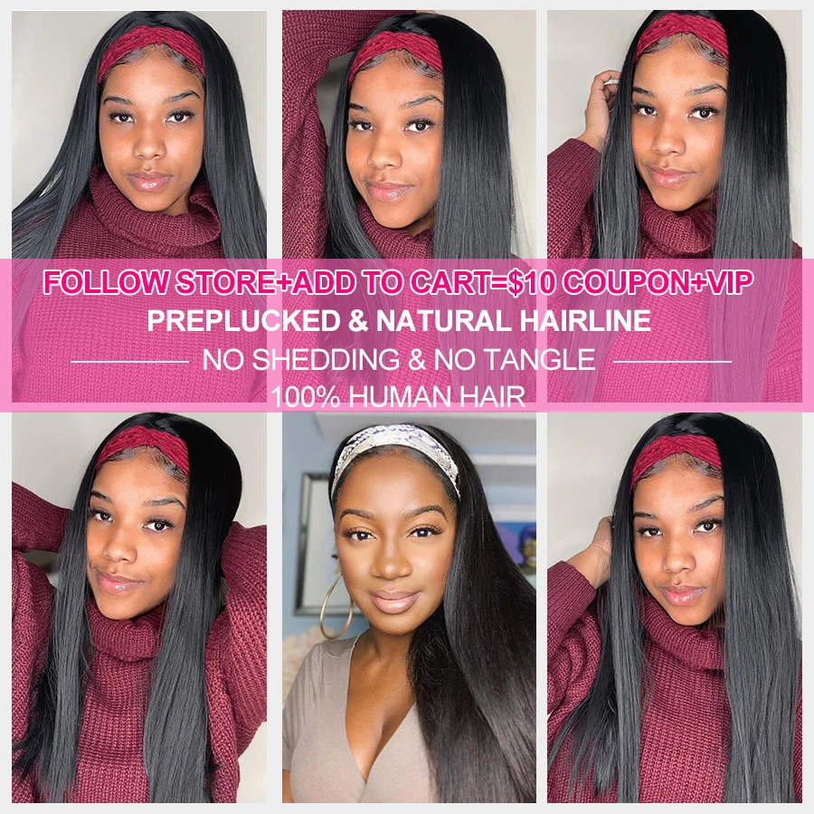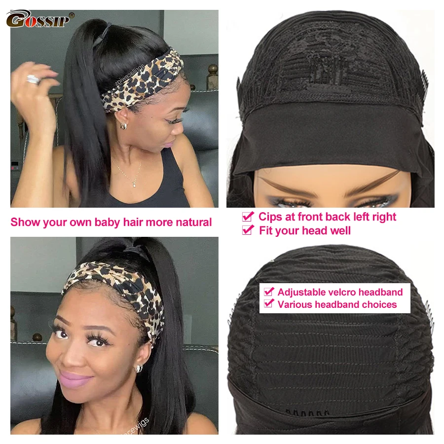 Сплетнистый прямой парик с головной повязкой Glueless человеческие волосы парики для черных женщин бразильский доступный шарф парик с головной повязкой для начинающих