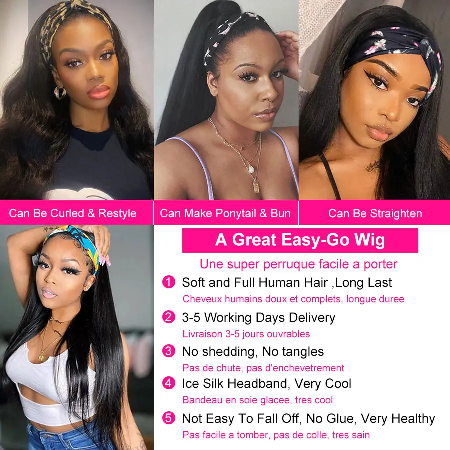 Density150% ,180% density in stock,Affordable Headband Wig Beginner Friendly