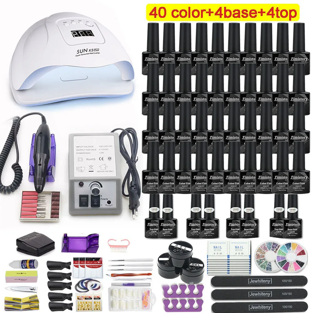 40 цветов, лак для ногтей, супер маникюрный набор, набор для ногтей со всеми инструментами, необходимыми для маникюра, быстрая сушка, электрическая пилка для ногтей