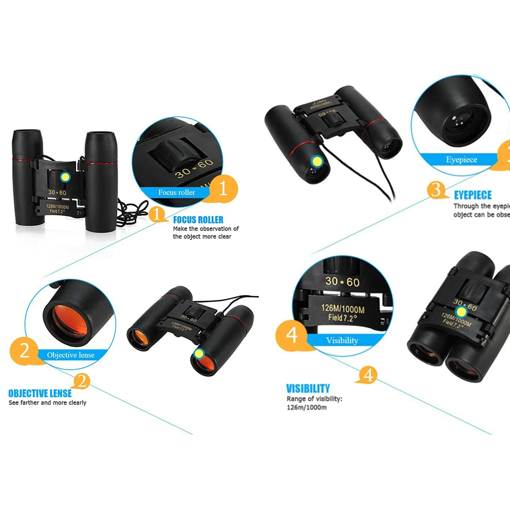 30x60 Телескоп, Бинокль, мощный охотничий бинокль и оборудование, высокое время, мини портативный профессиональный уличный ночной телескоп