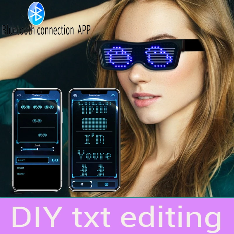Сделай сам Волшебная Bluetooth вечерние Вечеринка Новинка светильник щение управление через приложение светящиеся очки USB зарядка редактирование Многоязычная светодиодный страя Вспышка светодиодная лампа