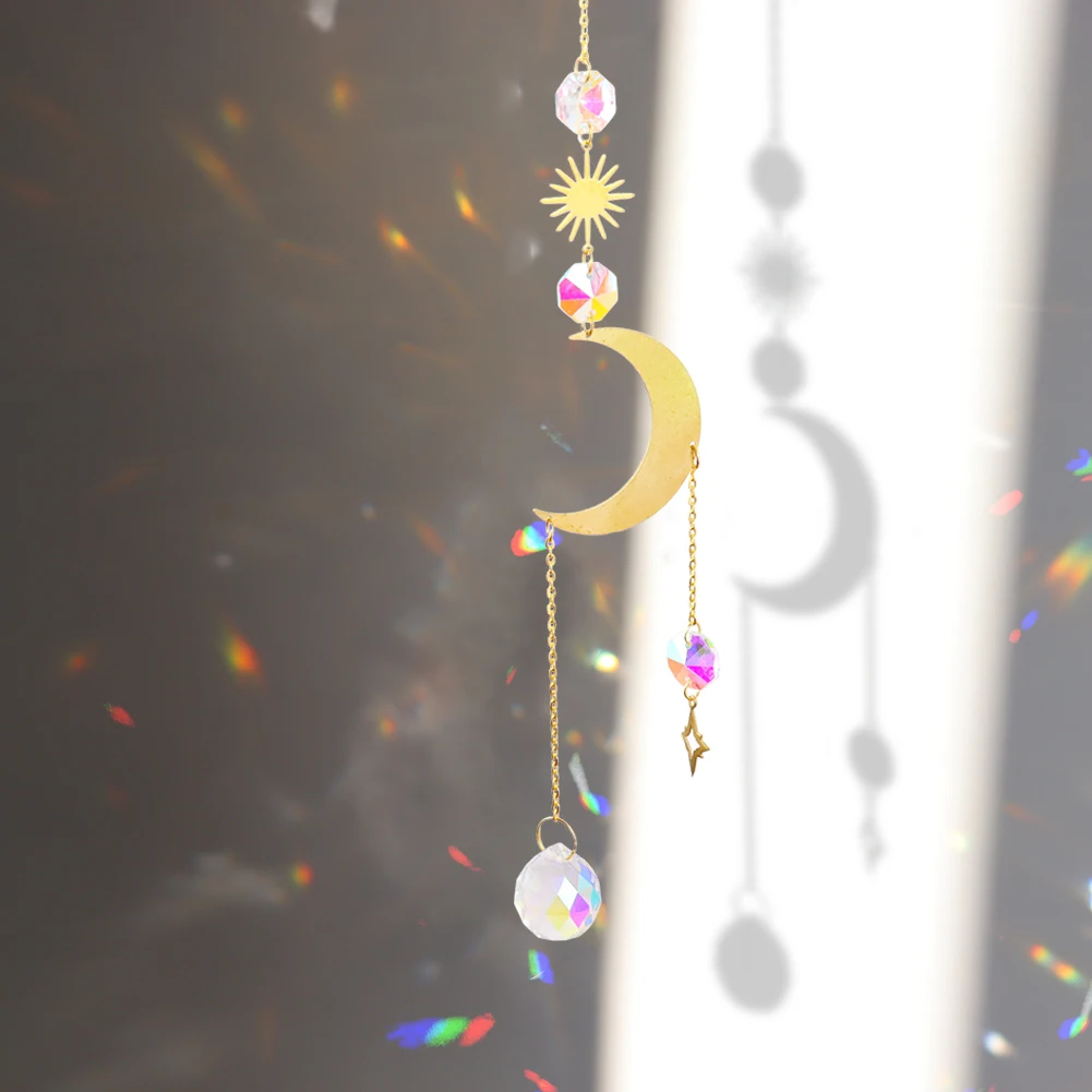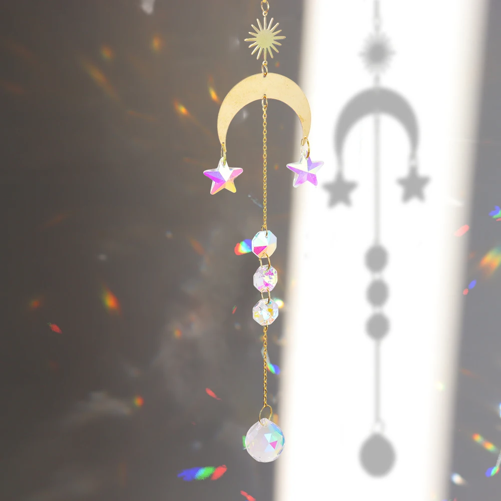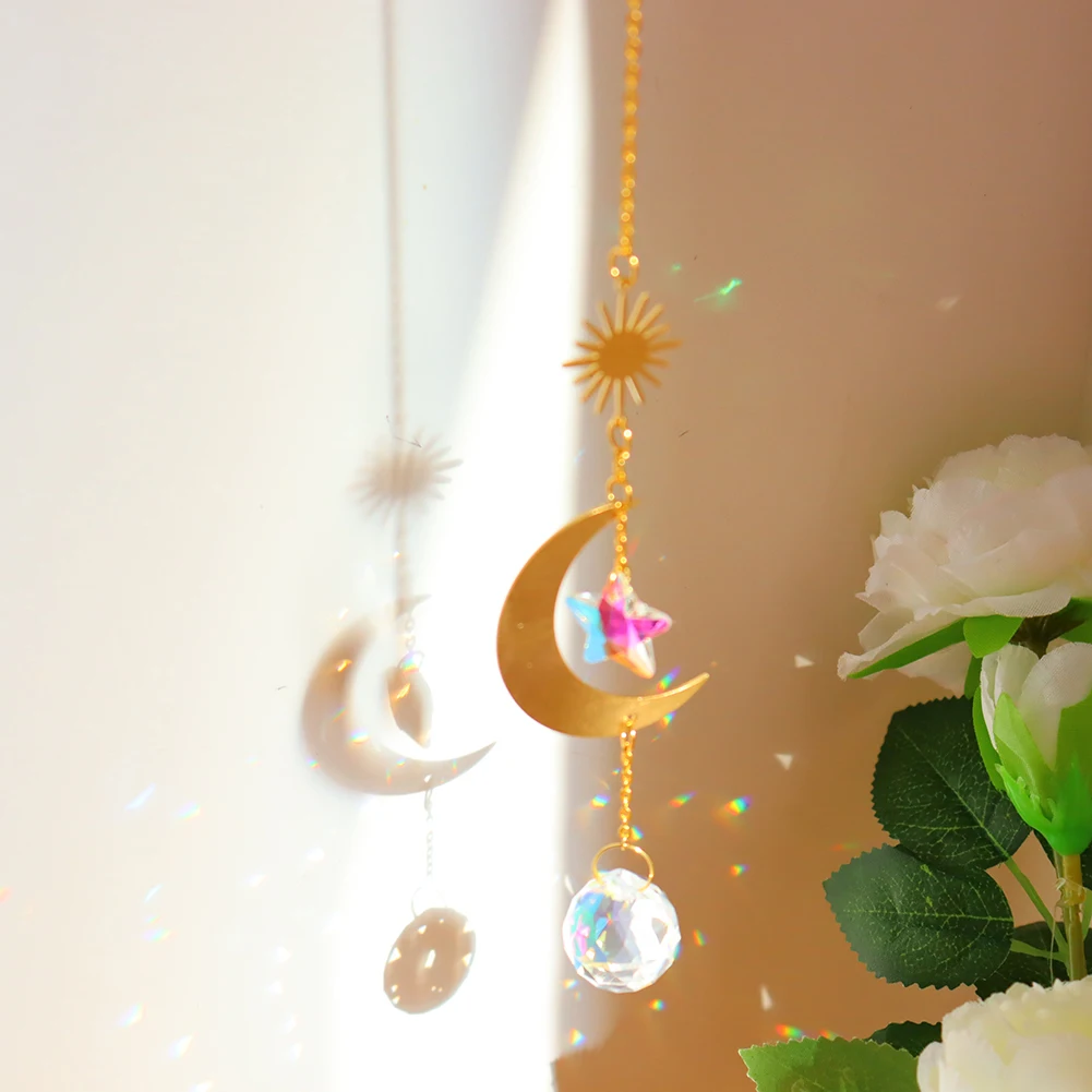 Хрустальные колокольчики, звезда, луна, солнце, подвесные призмы для Ловца снов, подвесные каплевидные Подвески с покрытием для внутреннего сада, ветряные музыки