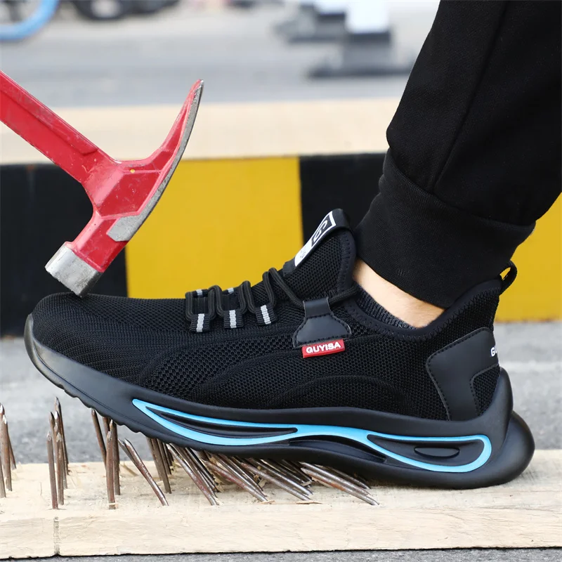 Мужские защитные рабочие ботинки, дышащие, со стальным носком, Нескользящие, строительные неразрушаемые, рабочие кроссовки