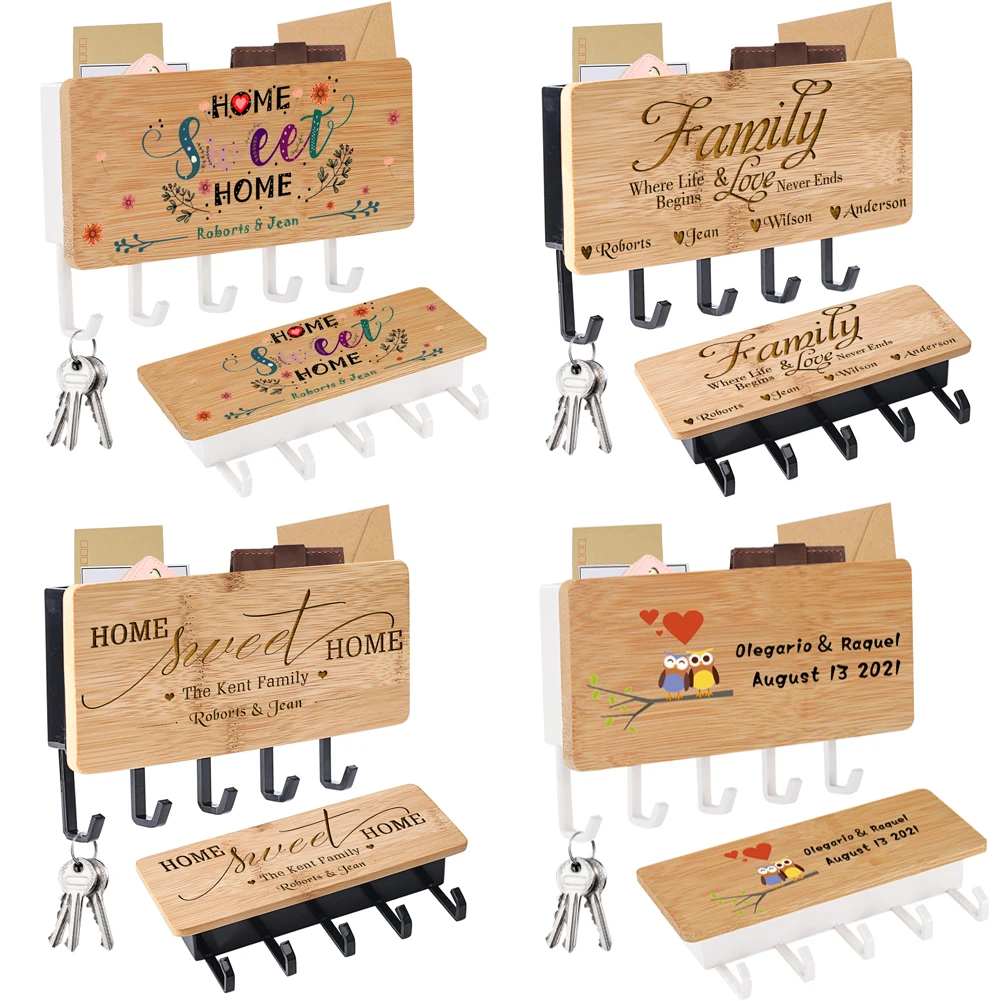 Настенная вешалка для ключей с текстом на заказ, крючок для задней двери, деревянный держатель для ключей, черныебелые крючки, индивидуальные декоративные украшения