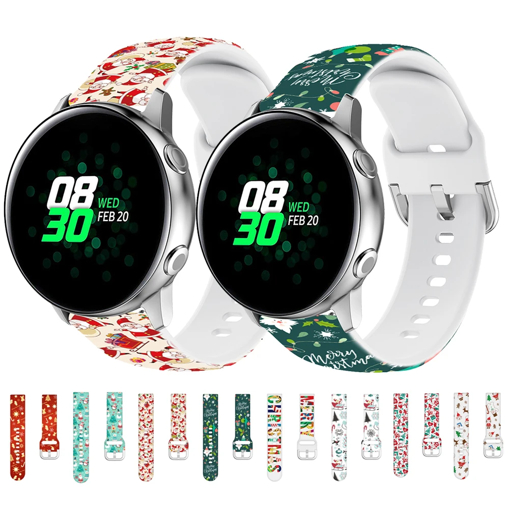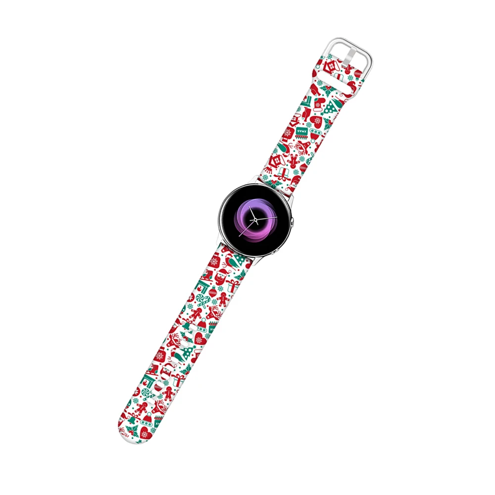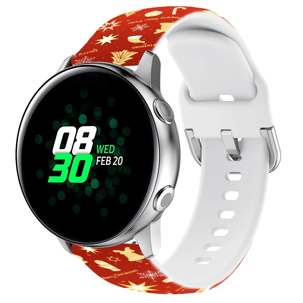 Ремешок силиконовый для Samsung Galaxy Watch Active 2, спортивный браслет с рождественским принтом, 22 мм 20 мм