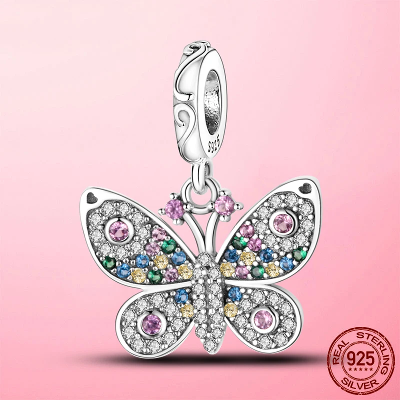 Лидер продаж, подвеска-Шарм, серебро 925 пробы, стрекоза, подвеска-Шарм, Цветные Кубики из циркония, подходят для браслета Pandora, ювелирные изделия для рукоделия