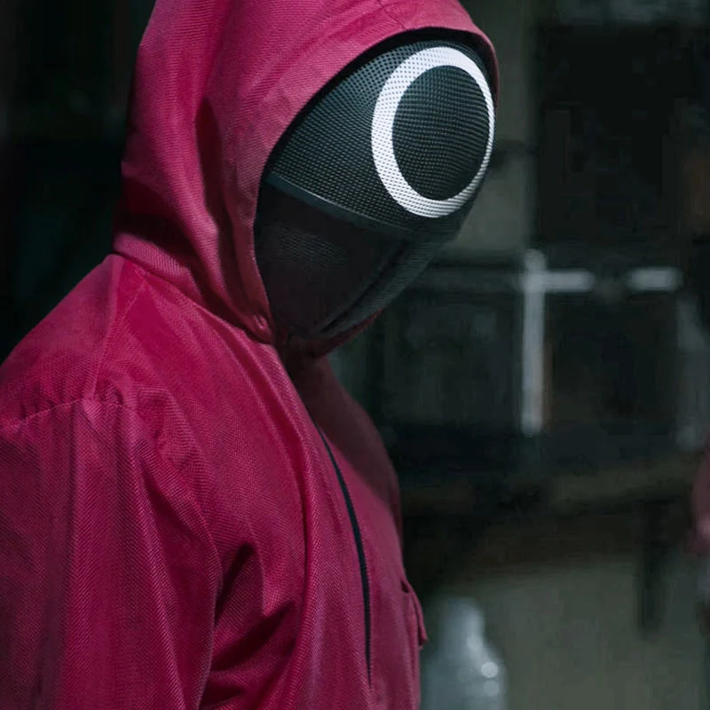 Костюм для косплея из игры кальмар, пластиковая маска с красным капюшоном, головной убор для босса, реквизит