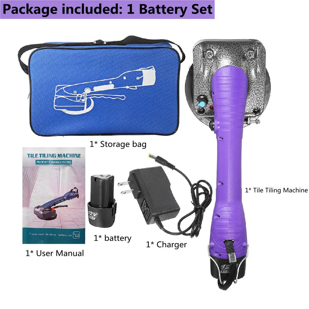 Посылка включает в себя:1 машина для плитки1/2 x батареиЗарядное устройство-1 шт.1 х сумка для хранения1 x Руководство пользователя