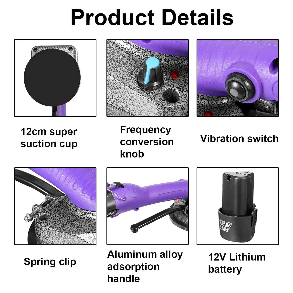 Спецификация:Материал головки машины: алюминиево-магниевый сплав, нержавеющая стальЦвет: фиолетовыйВход: 100-240 в 50-60 ГцВыход: 12,6 V 1000mAМощность:1000 ВтЕмкость аккумулятора:3000 мАчЕмкость литиевой батареи:12 ВВремя зарядки: 120 mintuesВремя работы: 300 mintuesЧастота вибрации:12000р/минЕмкость адсорбции: 45 кгПодходящая плитка:800x800mmДиаметр присоски:12 смИспользование:Команда по ремонту, проект по декорированиюПрименение: плитка для стен