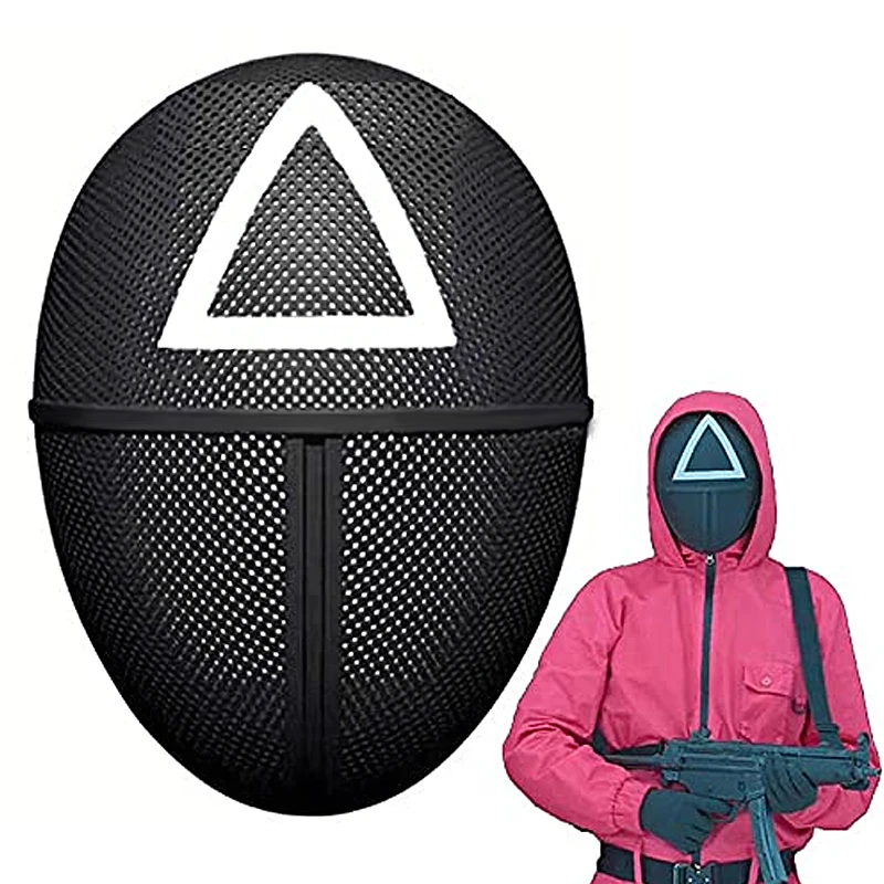 Сериал: игра кальмаровИсточник: треугольная маска квадратного кругаМатериал: пластикПосылка: Маска для косплея-1 шт.