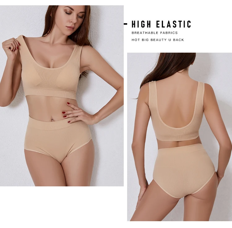 Женский бесшовный комплект нижнего белья, сексуальный бюстгальтер с глубоким U-образным вырезом, женский беспроводной бюстгальтер с мягкой подкладкой, женский однотонный бюстгальтер с полной чашкой и короткие комплекты