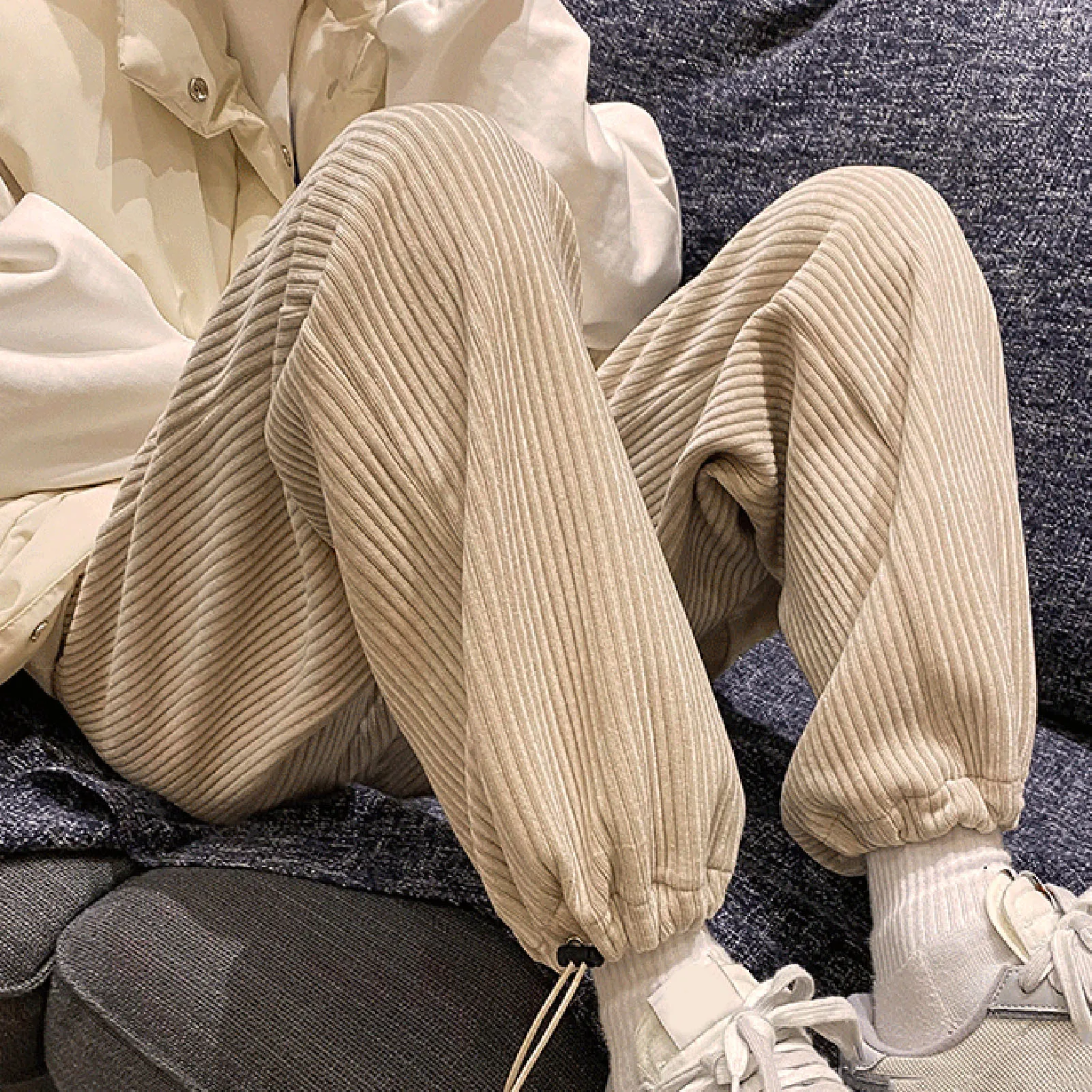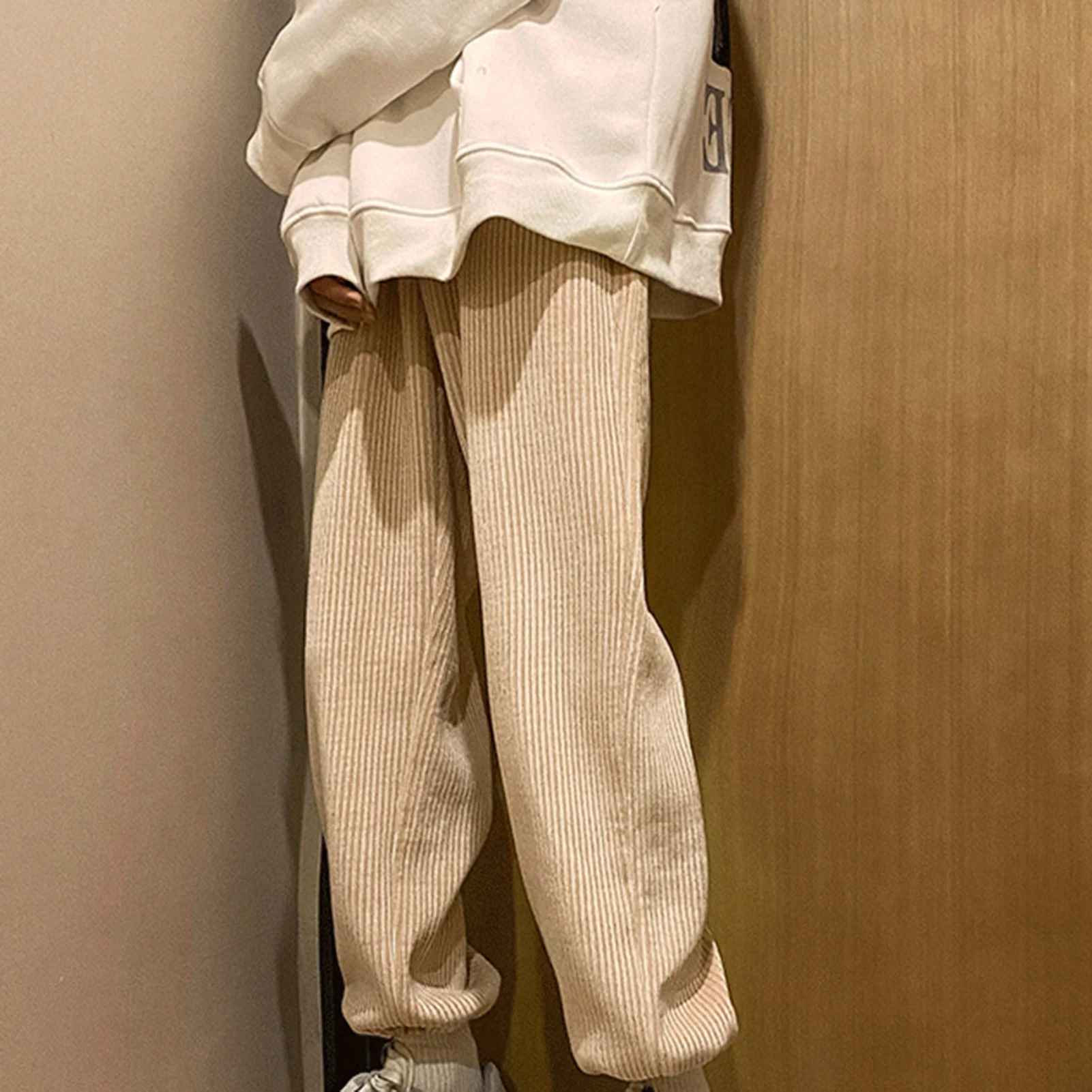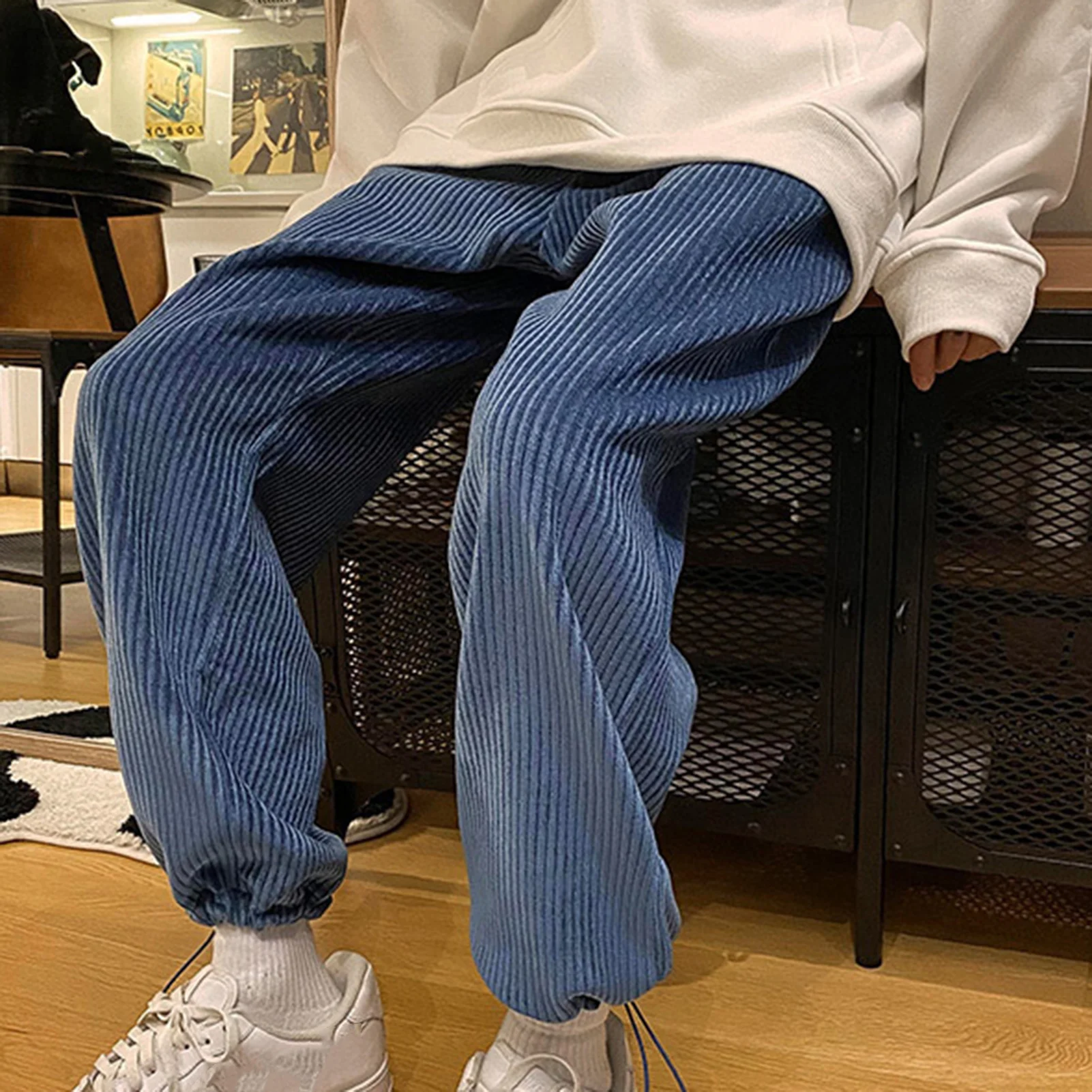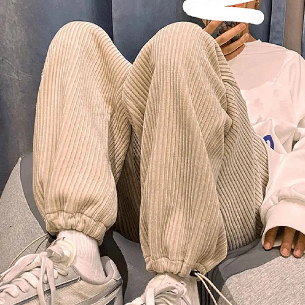 Хит продаж 2021 мужские прямые брюки с завязками женские вельветовые однотонные брюки оверсайз мужские теплые корейские уличные брюки для повседневной носки