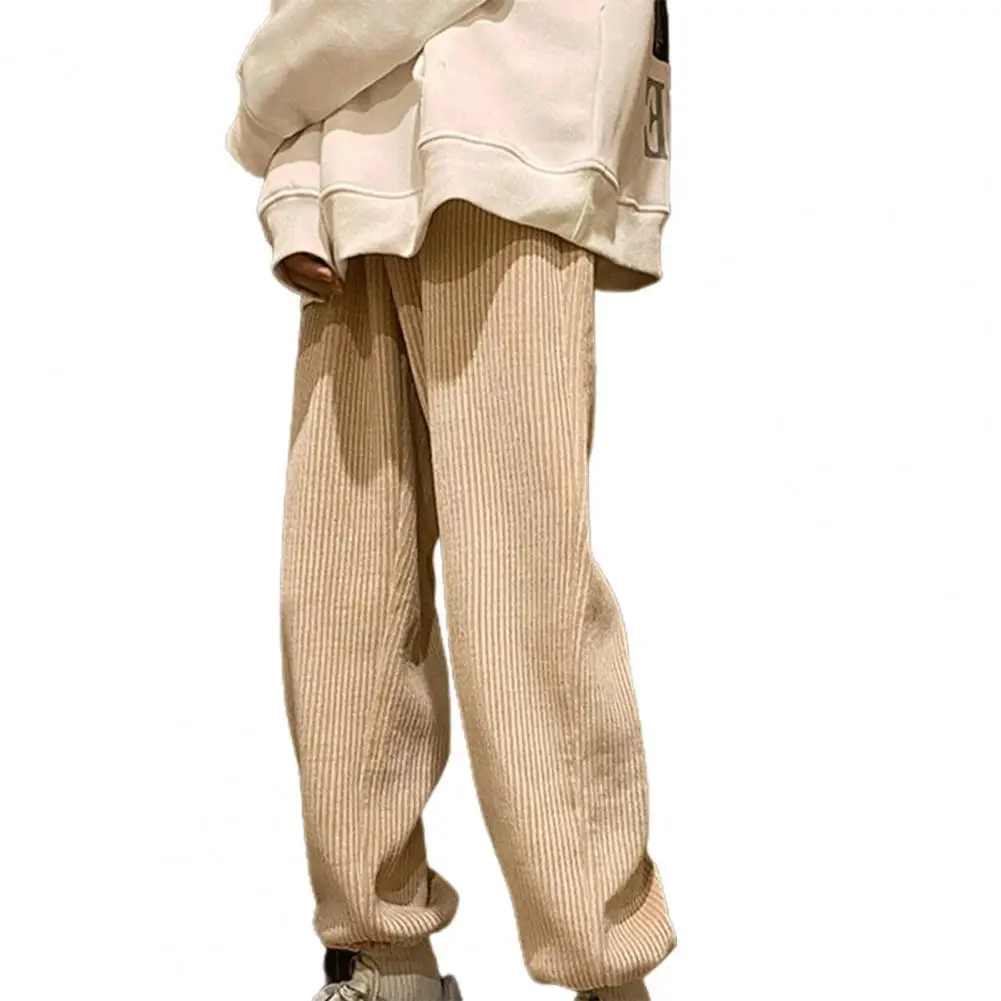 Мужские повседневные Прямые брюки с завязками, женские вельветовые однотонные брюки оверсайз, мужские теплые корейские уличные брюки