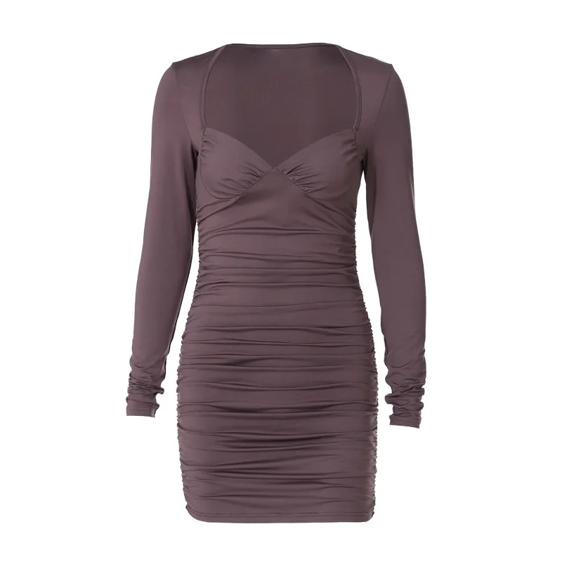 Осеннее однотонное мини-платье для женщин, сексуальное хипстерское ...