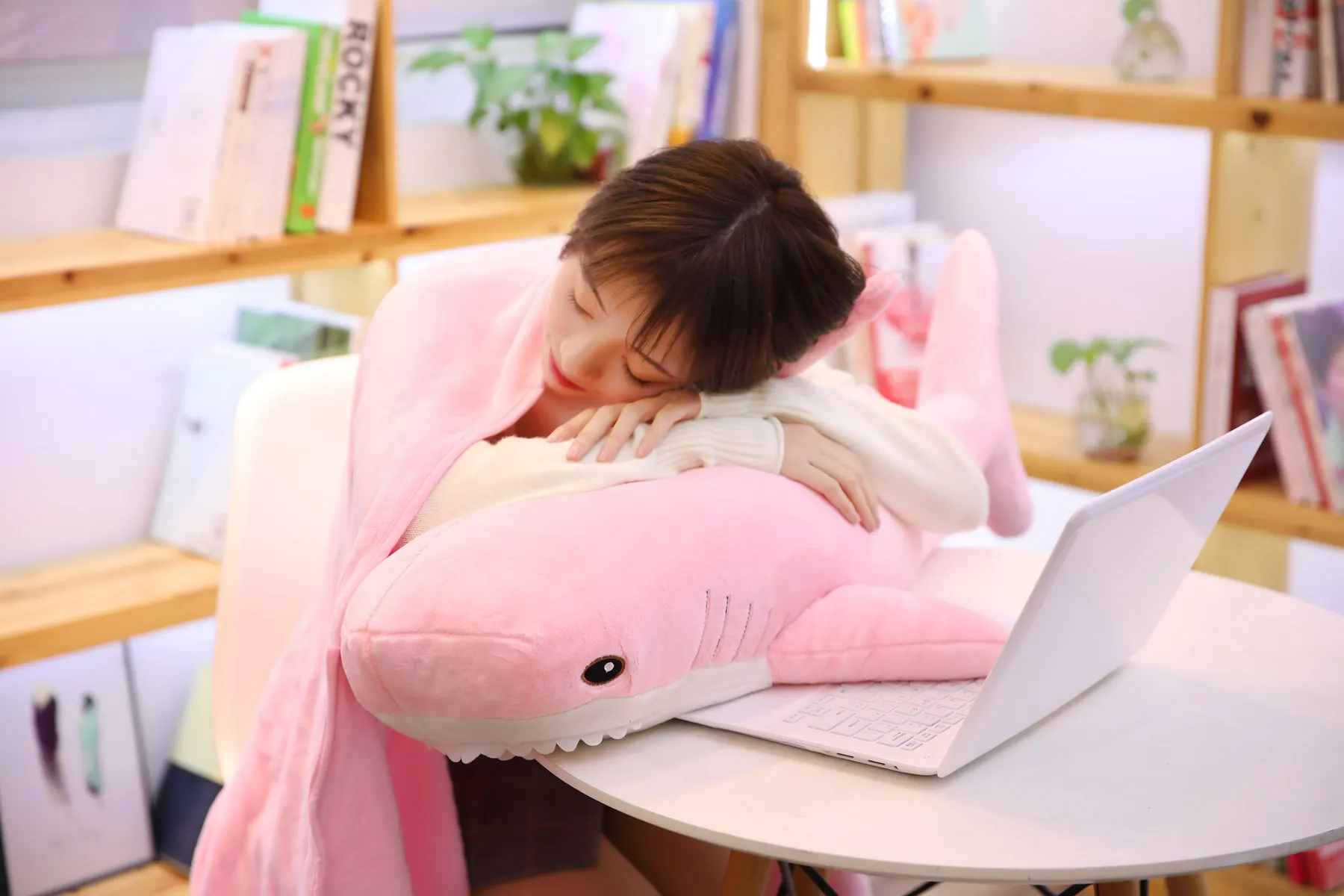 Акула из IKEA ,80 см. Плюшевая игрушка с пледом