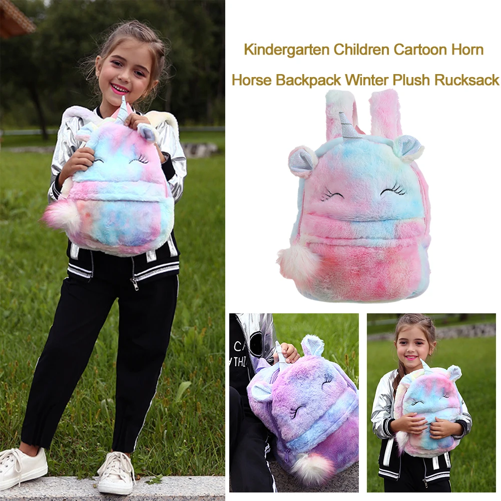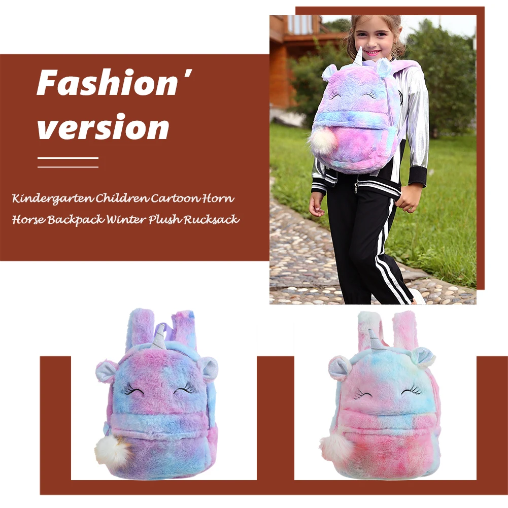 Детский сад милый Рог из мультфильма лошадь Рюкзак Осень Зима плюшевый маленький рюкзак