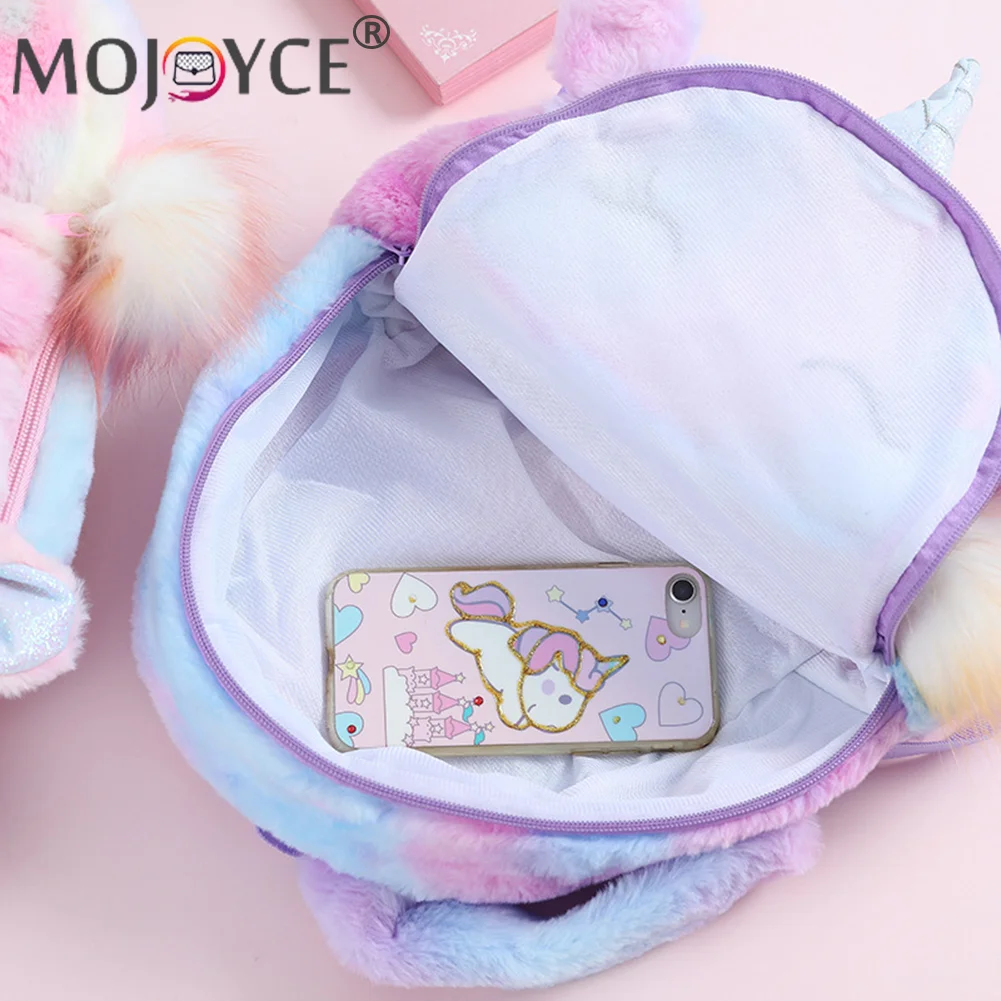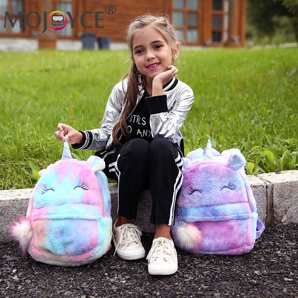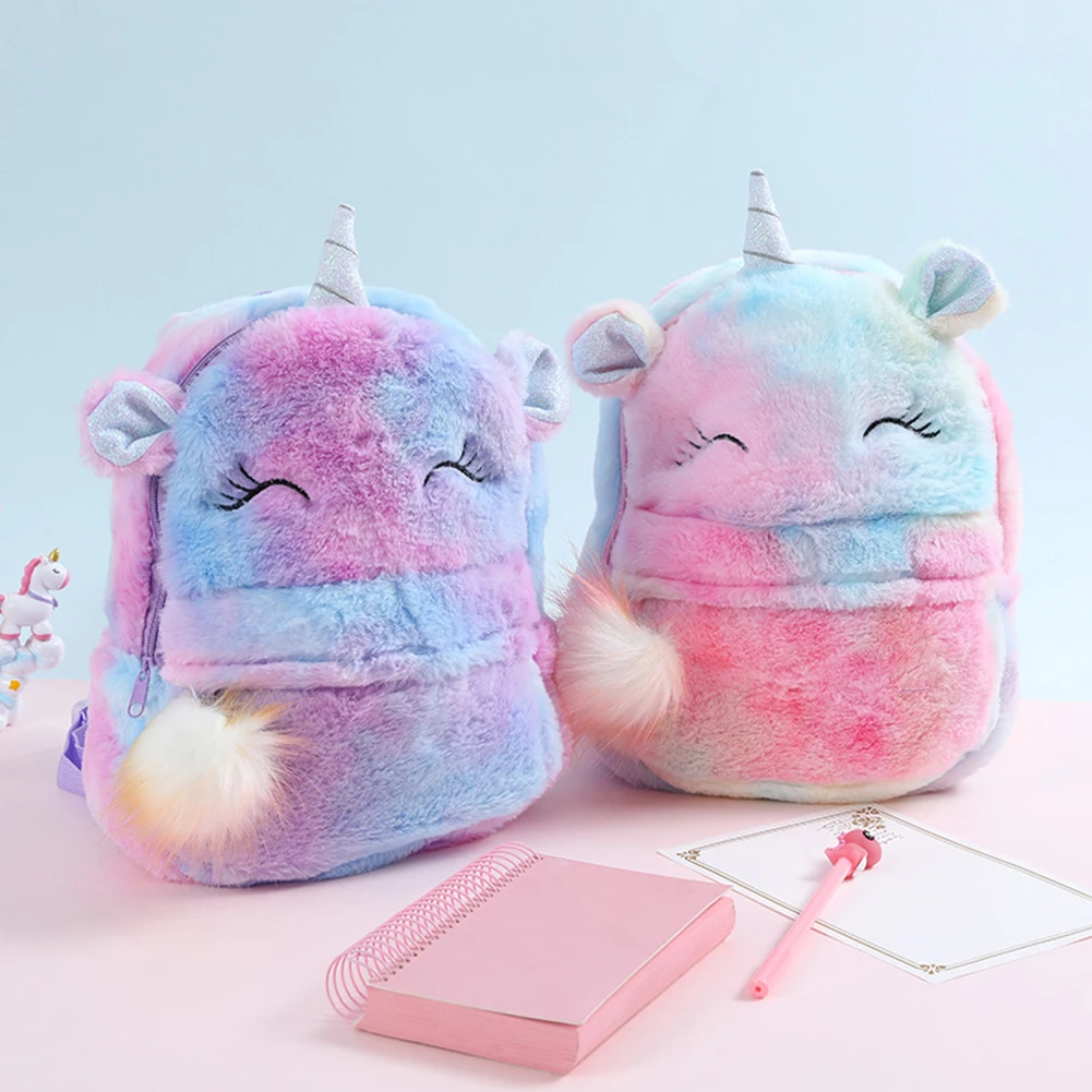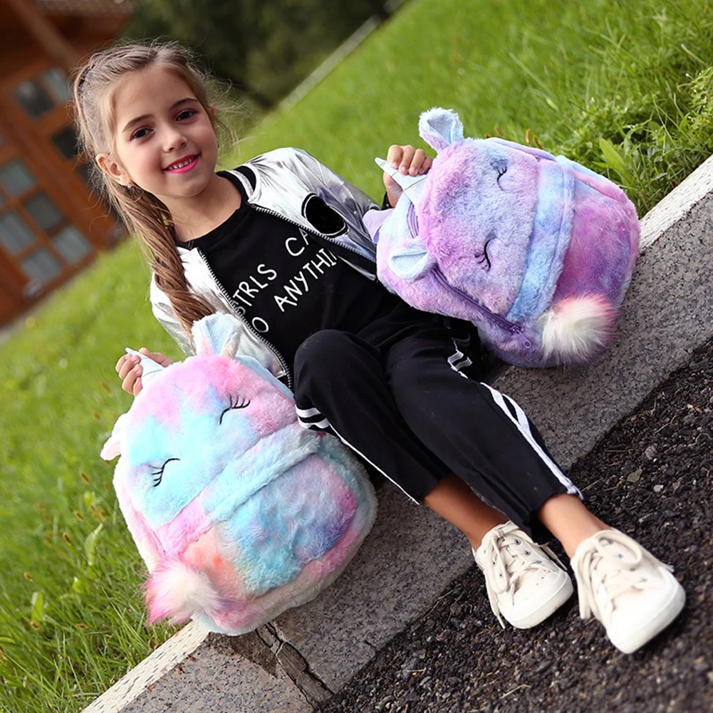 Милый мультяшный рюкзак для девочек, плюшевые рюкзаки с единорогом,...