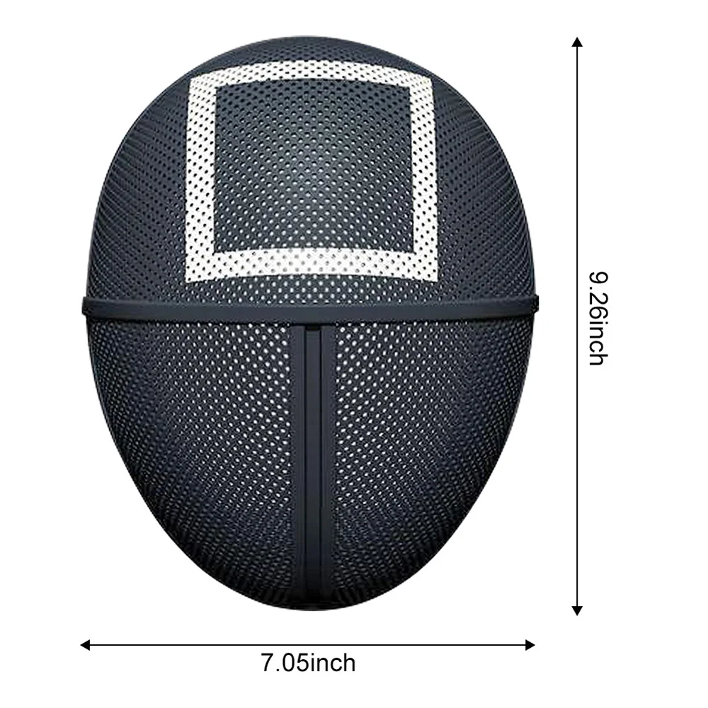 Сериал: игра кальмаровИсточник: треугольная маска квадратного кругаРазмер: как на картинкеМатериал: пластикВес: около 100 гПосылка: 1 пластиковая маска