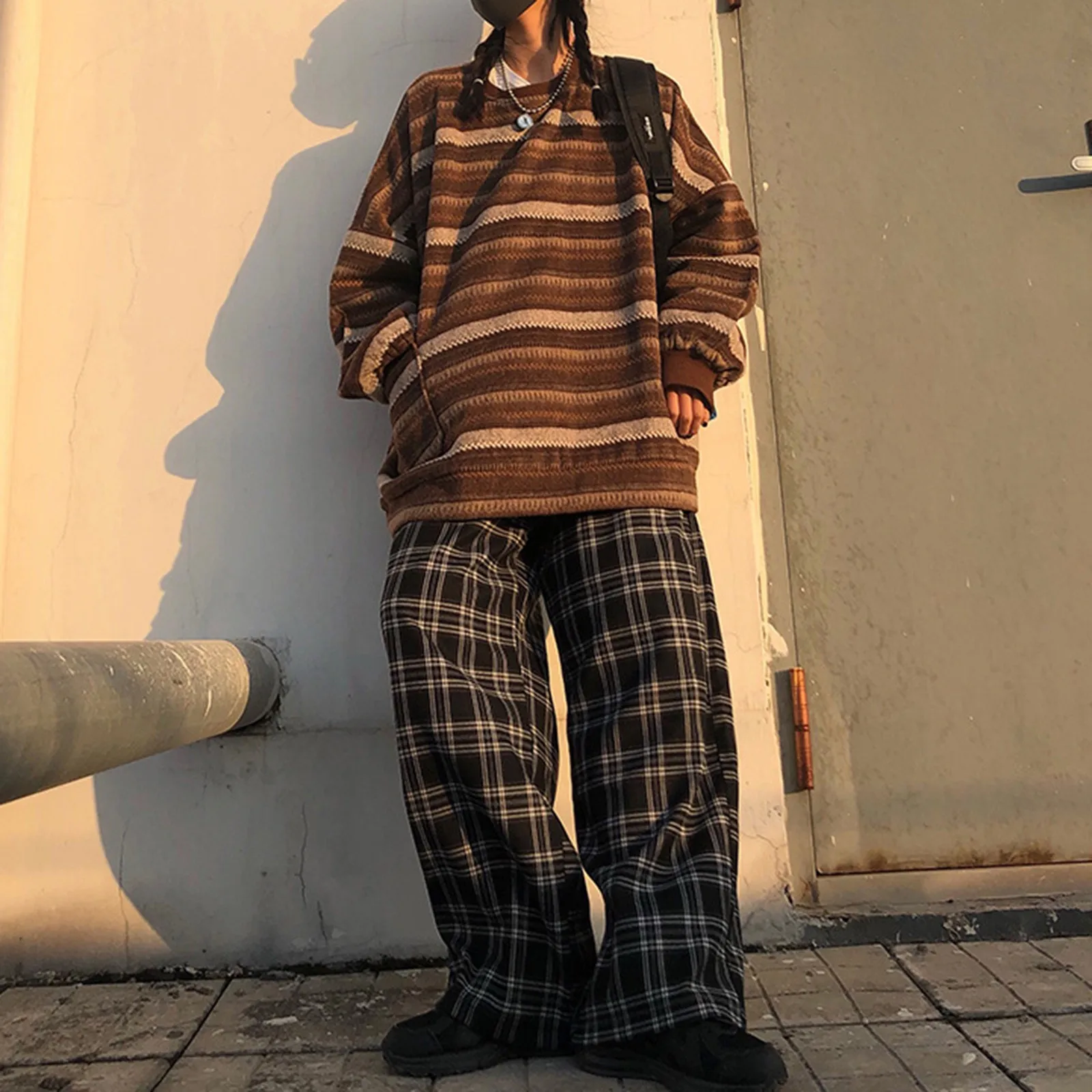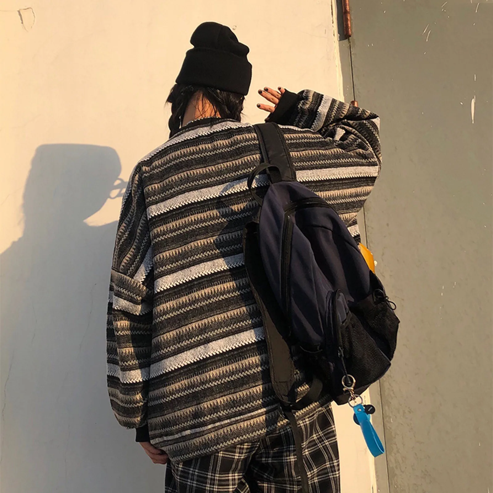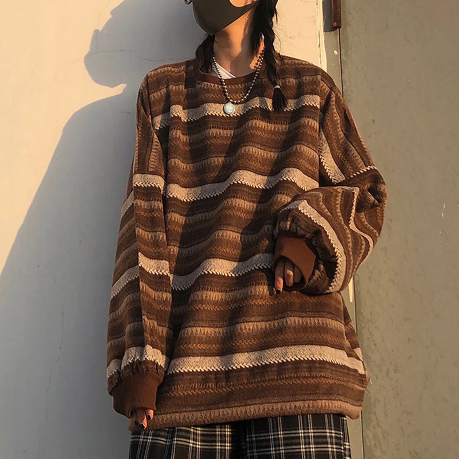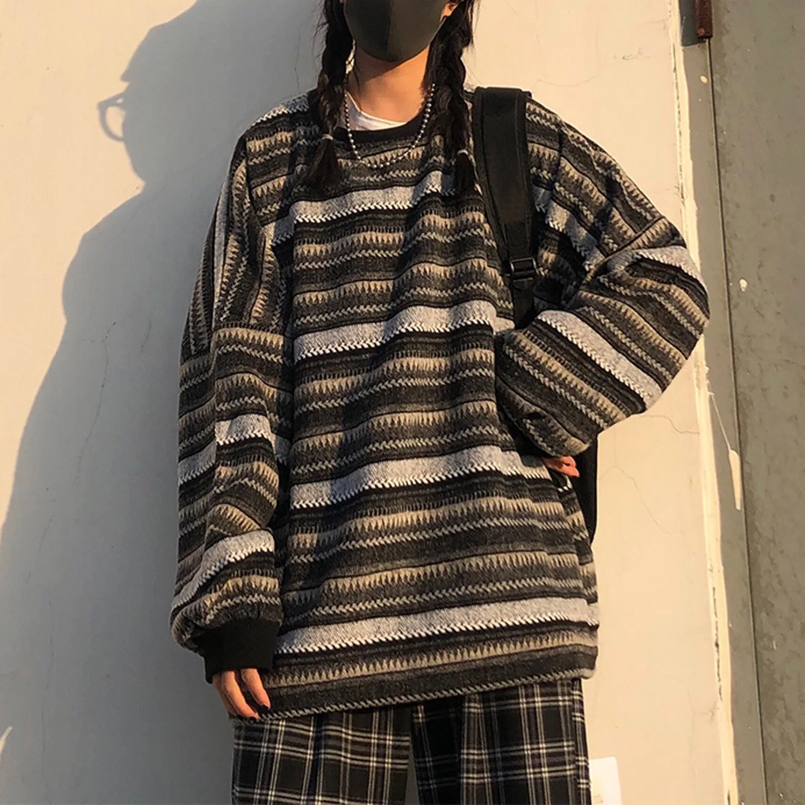 Женские винтажные Полосатые свитера, осенний Вязаный Свитер оверсай...