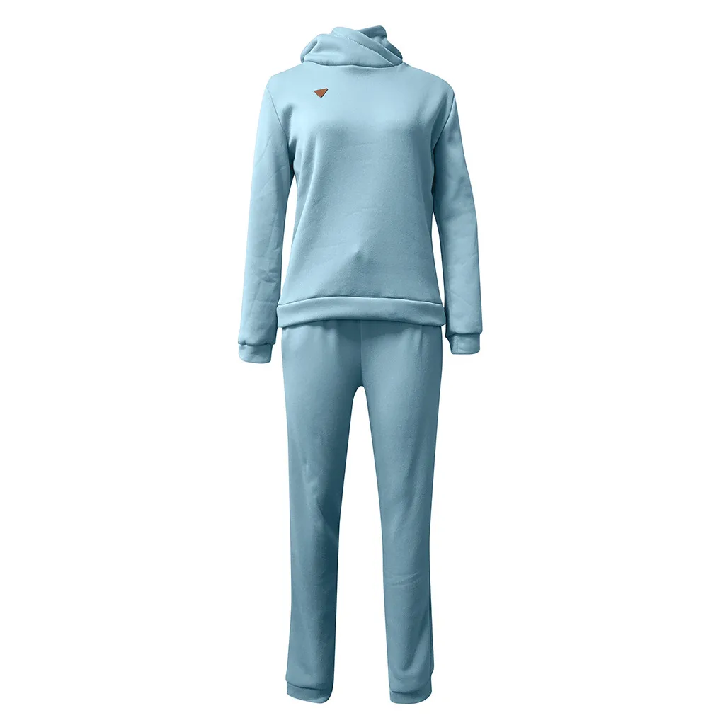 Женский однотонный Повседневный Спортивный костюм и джоггеры с капюшоном, комплект из двух предметов, Осень-зима 2021, Теплый Женский комплект длинных брюк, спортивный костюм