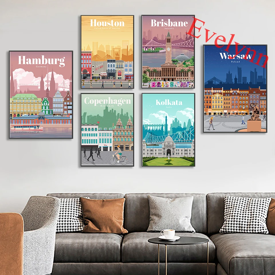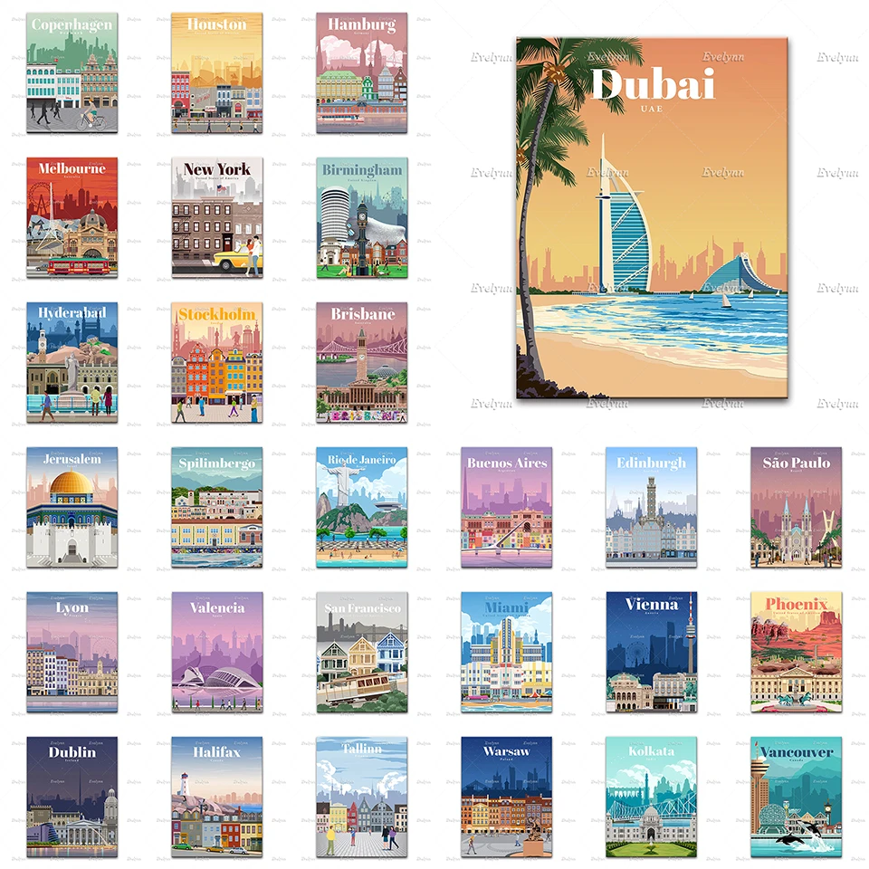 Постер для путешествий, Дубай, город Майами, Nyc, Сан-Франциско, Италия, Бразилия, Дублин, город, Польша, современный декор гостиной, принты, настенное искусство, холст