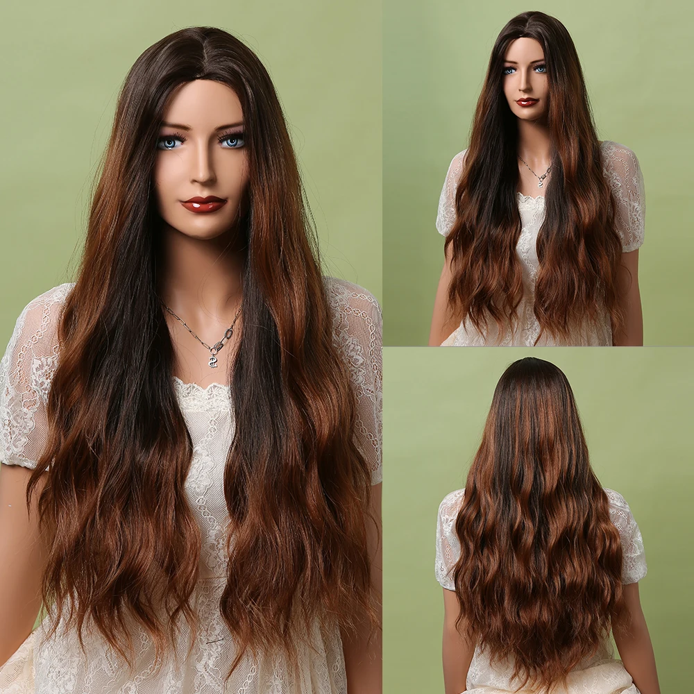 Медно-коричневый синтетический парик длинные волнистые волосы парик...