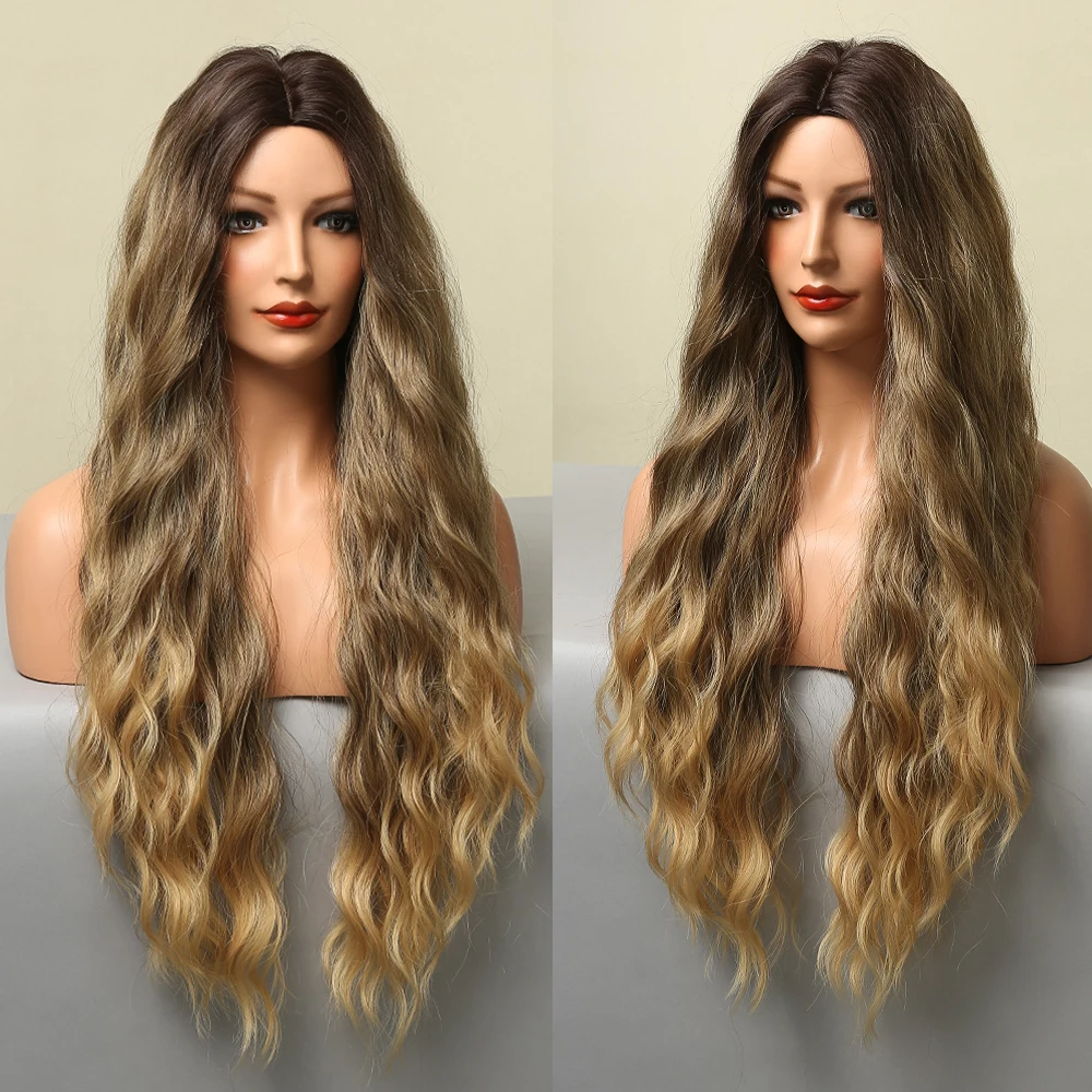 Длинный волнистый парик GEMMA, Омбре, коричневый, золотой, светлый ...