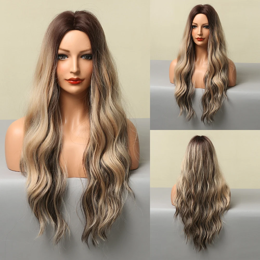 Длинные волнистые парики блонд Омбре, парики с темными корнями сред...