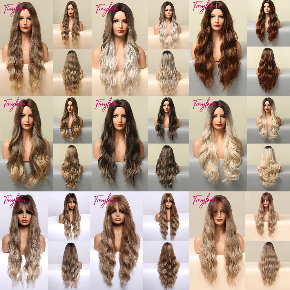 Крошечные Синтетические длинные волнистые парики Лана с эффектом ом...