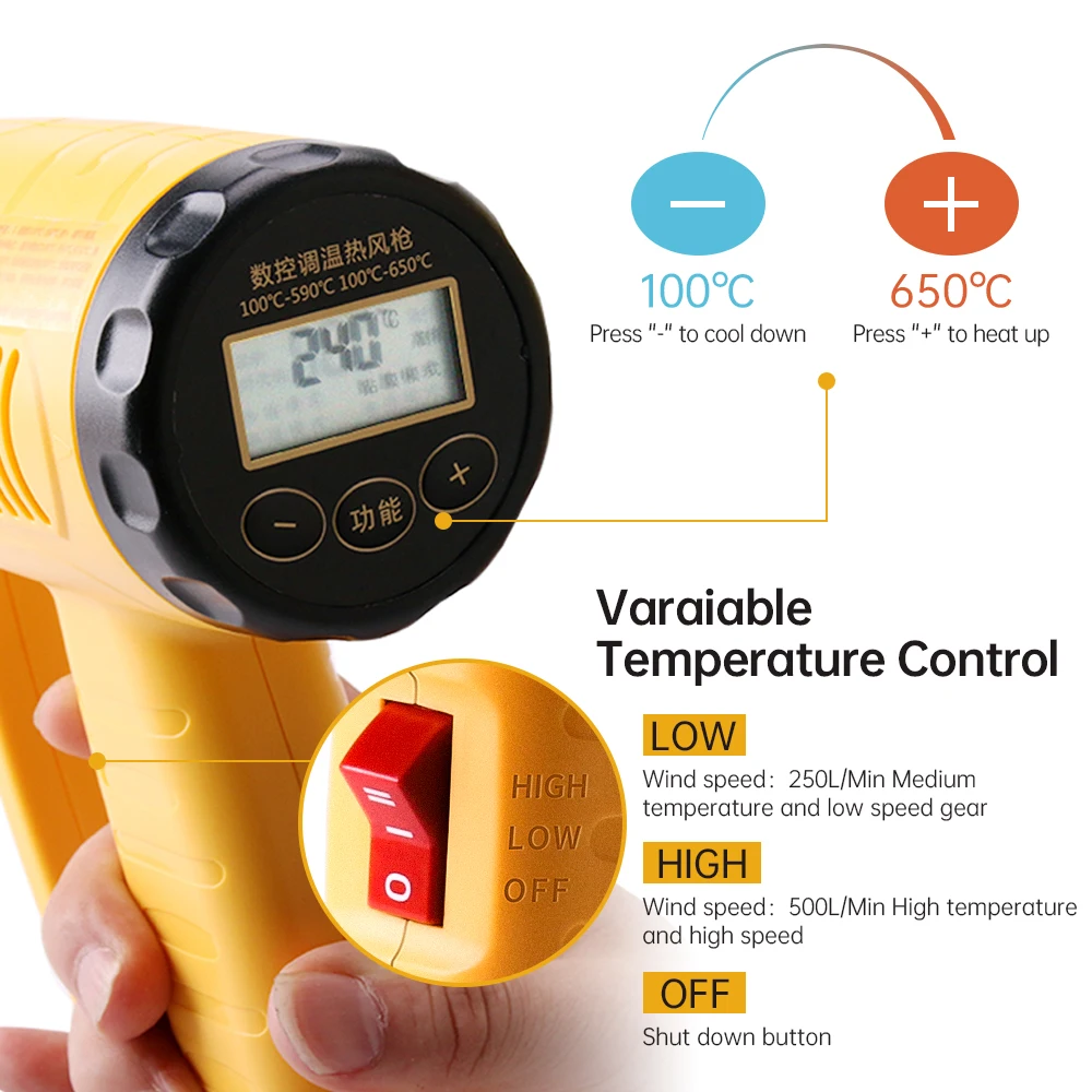 Фотофен 2000 Вт с ЖК-дисплеем, электрические тепловые пистолеты, регулируемый фен, фен для пайки, сужение ПВХ, снятие краски